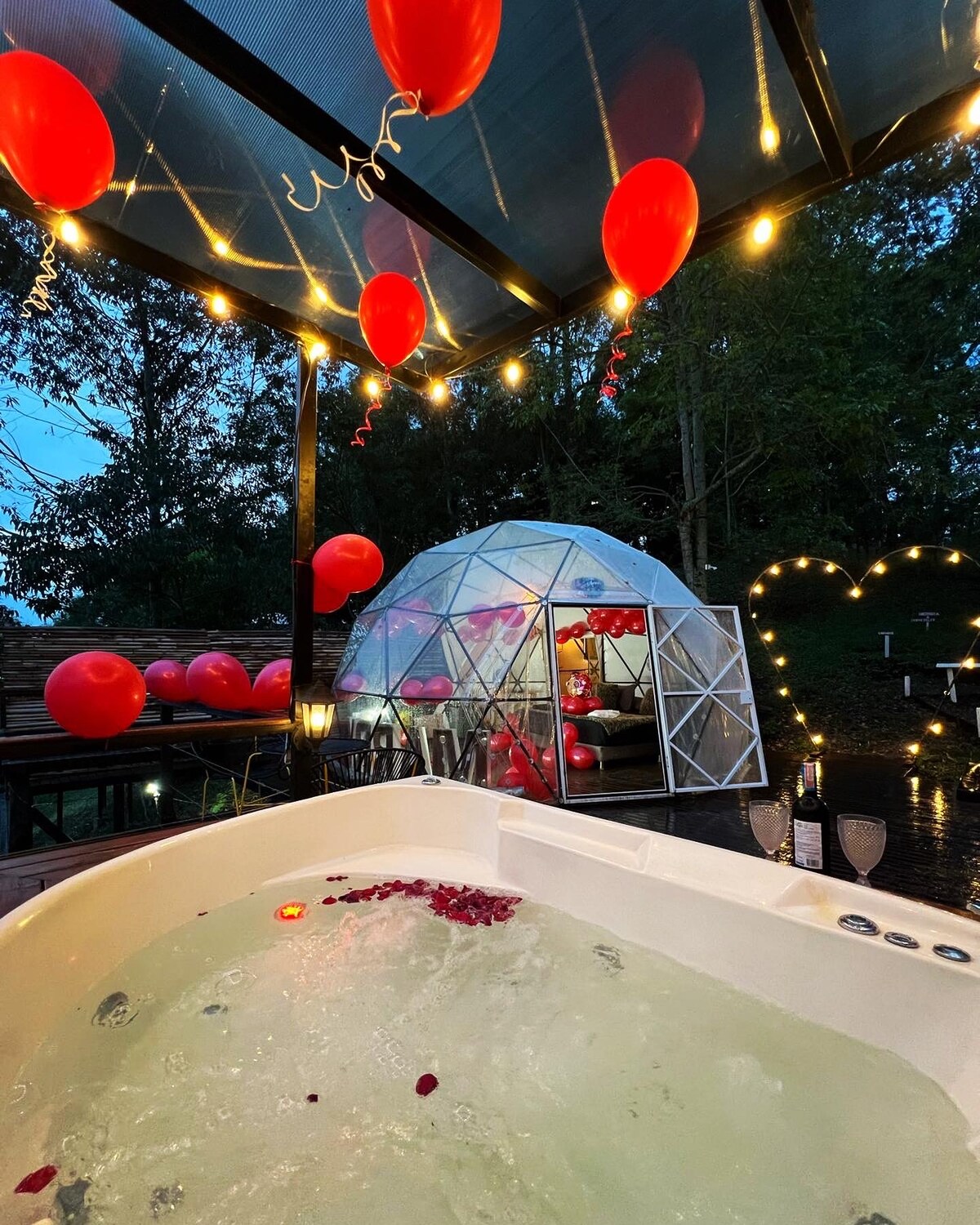 Escápate a este exclusivo glamping para 2 personas, ideal para desconectarse en medio de la naturaleza, con una vista espectacular a los montañas que puedes apreciar desde la maya catamarán. Tu estadía incluye: Jacuzzi privado (climatizado) y sin límite de tiempo 2 copas de sangría kit de fogata Desayuno Ideal para escapadas románticas o de relajación. Vive la magia del glamping con todas las comodidades y disfruta de una experiencia inolvidable bajo las estrellas.