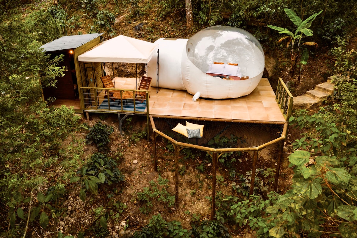 入住我們全新的豪華露營穹頂,遠離外界,提供配備按摩浴缸和露臺的豪華住宿,讓房客沉浸在自然環境中。」 •可欣賞山脈、森林的美景。 •加熱水按摩按摩浴缸 •獨立衛浴,配備熱水淋浴 •無線網絡 •雙體船網 •餐廳、泳池 、 準備好入住世界排名第2的房間了嗎? 距離哥倫比亞波哥大僅一個小時!