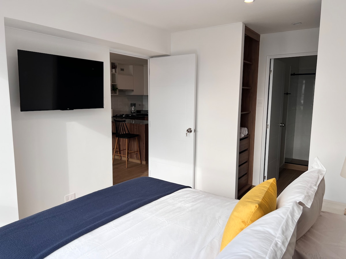 我們是APARTI ,我們設計現代、安全和舒適的空間,讓您的旅程難忘。 📍地點:這套公寓非常適合那些尋找舒適、設計和優越地理位置的人。 它位於Av. Canaval y Moreyra,位於聖伊西德羅市中心,距離一流的餐廳和酒吧以及購物和商業中心僅幾步之遙。