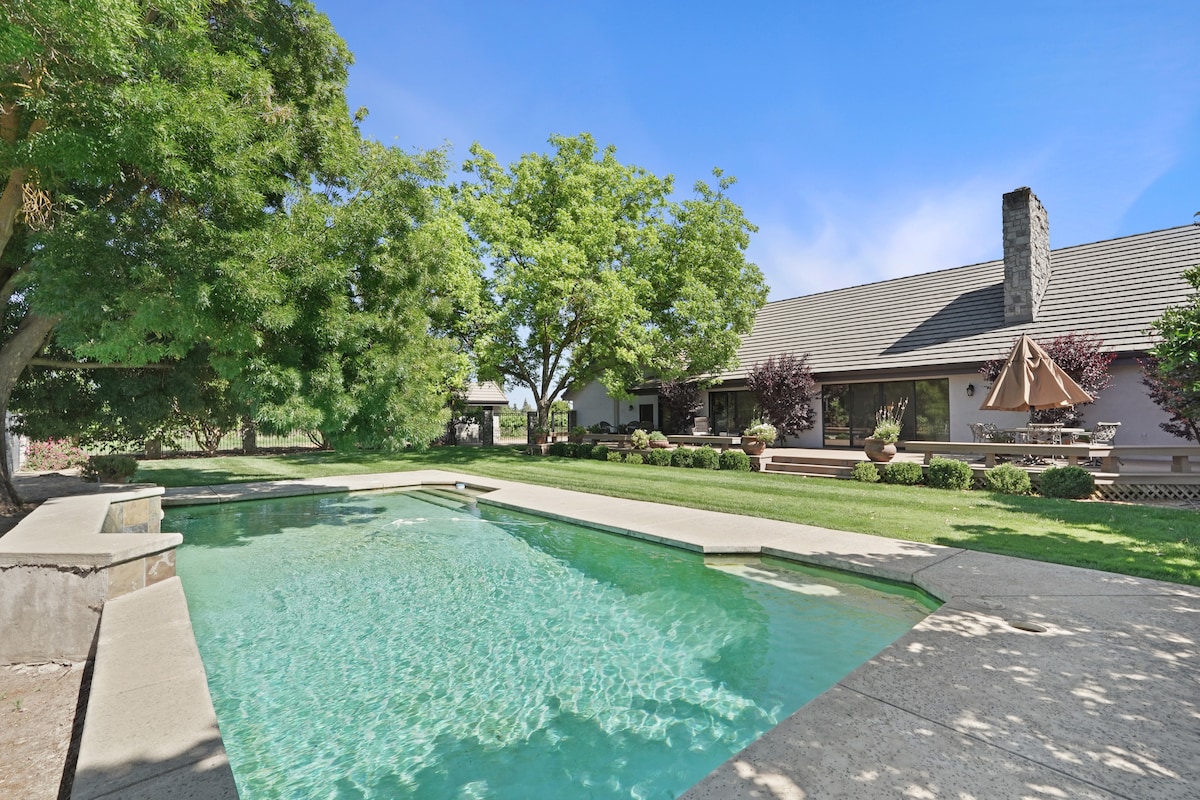 一個我們稱之為家的神奇地方。坐落在20英畝的核桃樹中間,是您最喜歡的新度假勝地! 您可以在美麗的果園屋坐下放鬆,也可以到外面享受露臺/泳池/燒烤/火坑和水療。其中一間臥室位於樓上遊戲塔樓,充滿娛樂選擇! ! 此外,如果您和我們一樣喜歡動物,您可以幫助餵養我們毛茸茸和羽毛的朋友。無論如何......準備好愛上它們!