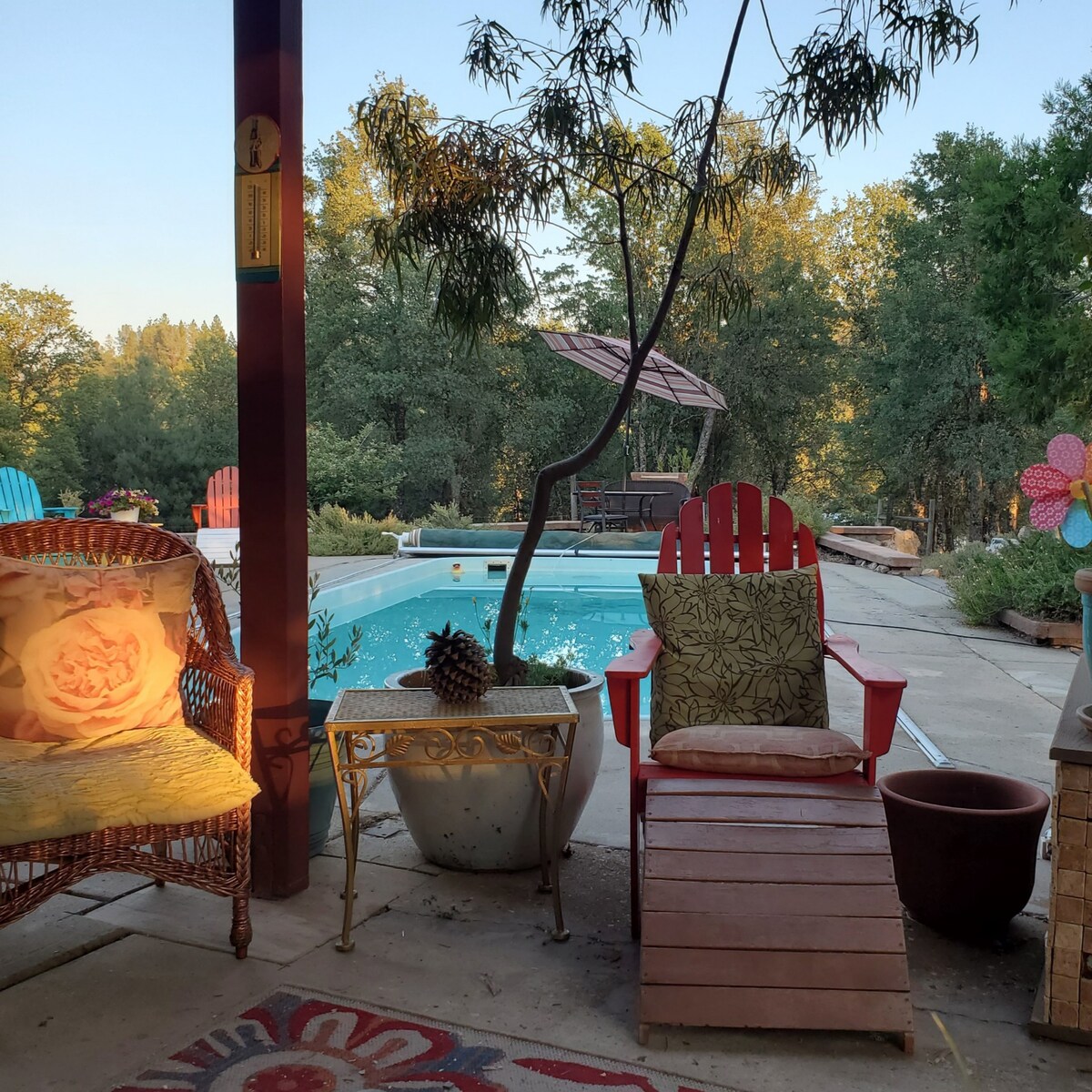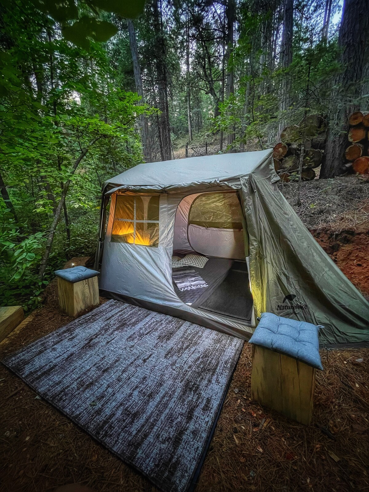 這座舒適的帳篷坐落在紅杉林中,燈光璀璨,讓您在大自然中度過難忘的假期。 在我們的公雞叫聲中醒來,享受我們的徒步小徑,嘗試射箭和斧頭投擲,在高空滑索上玩耍,並與我們的兔子、雞、鴨、山羊和綿羊一起玩耍。 聚在一起欣賞美麗的日落,使用我們的燒烤架烹飪美味的晚餐,在營火旁擠滿煙霧,然後步行上山欣賞星空。