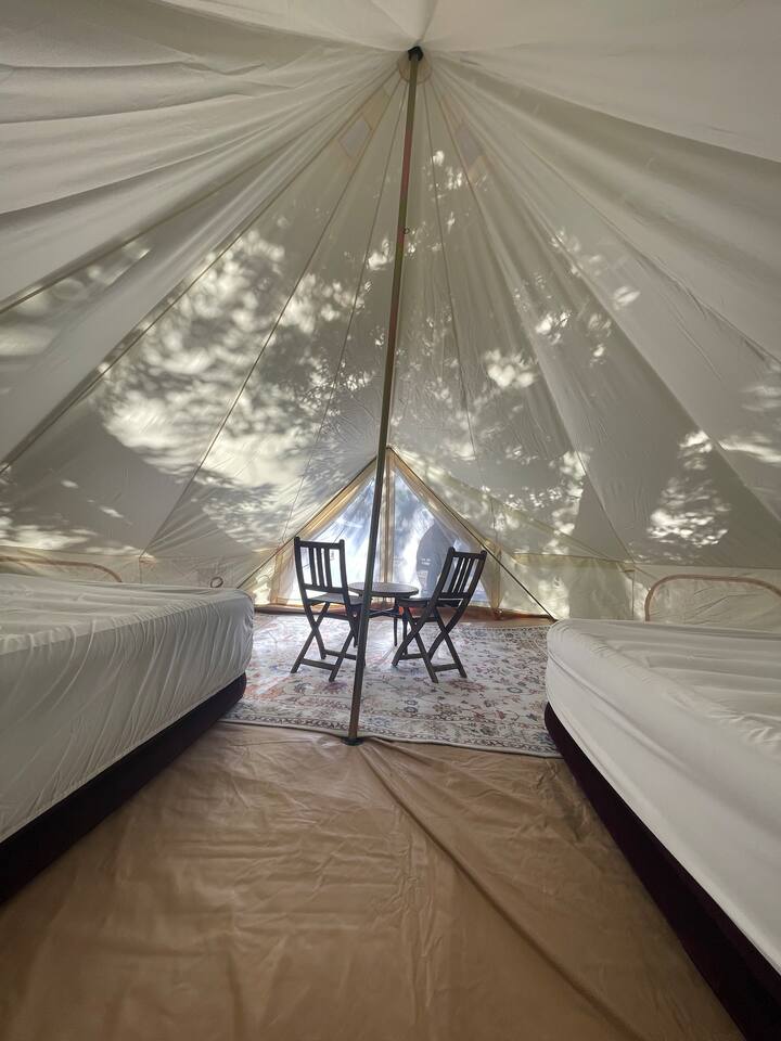 我們的帆布帳篷小屋非常適合任何戶外愛好者,他們想要冒險、便利和一些設備! 我們的帳篷小屋包括WiFi、有限電力、便攜式燈籠、四張床、四個睡袋和四個露營枕頭。 每個地點也會有私人野餐桌、野餐盒和烤架。 房客還可以使用公共區域的營火設施、洗碗台和廁所。 請注意,露營地房客無法使用淋浴間或洗衣服務。