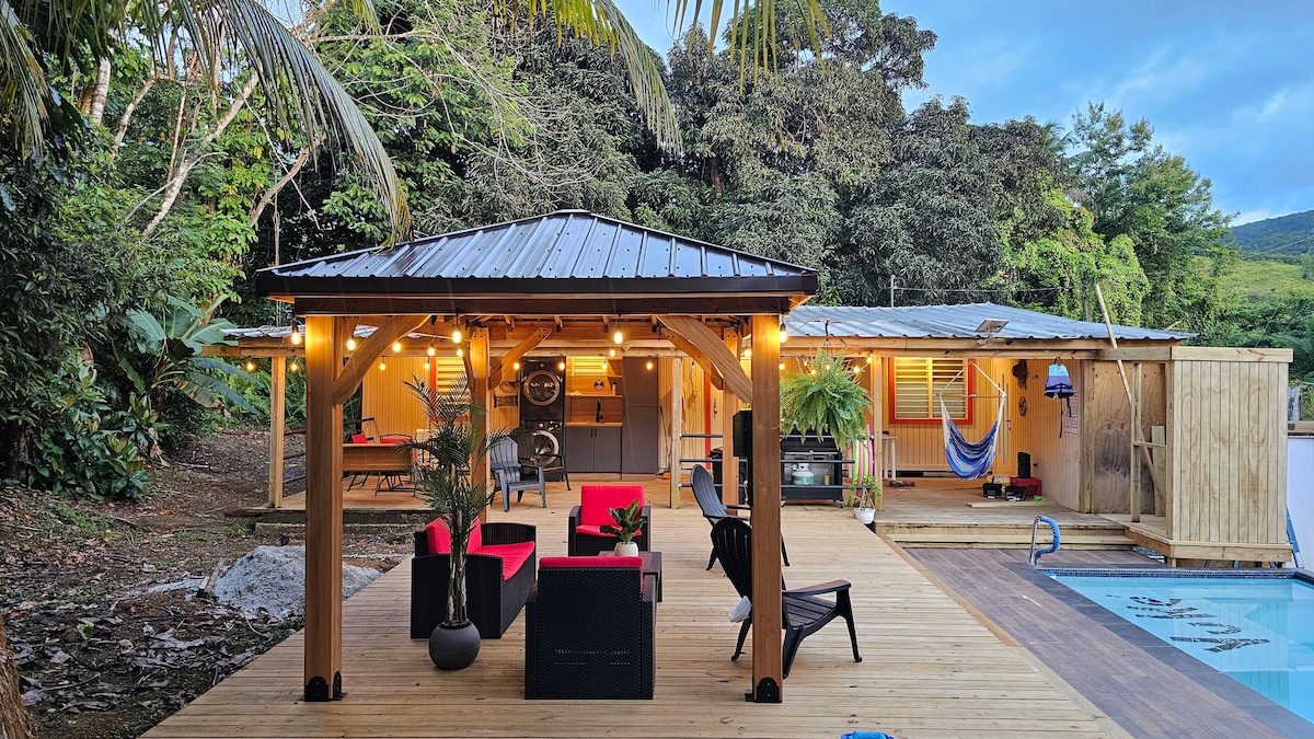 🔥私人溫水泳池—非常適合白天或晚上放鬆身心。 新裝修的私人小屋,周圍有熱帶雨林,位於El Yunque邊緣🌿 僻靜祥和,但距離3號公路和絕美海灘僅幾分鐘路程。 探索私人步道、Las Pailas天然滑水道(4分鐘)和La Monserrate藍旗海灘(16分鐘)。 ⚡發電機和水箱,讓您安心入住。