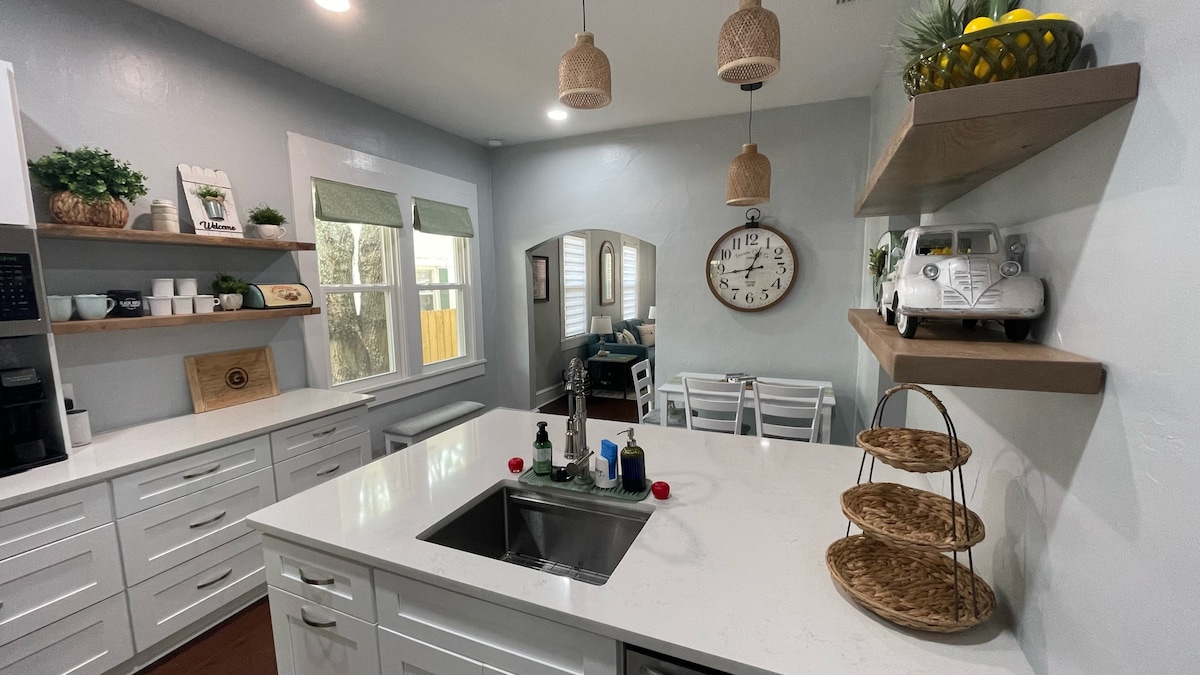 歡迎回到您的家!2間臥室/可入住6人,9分鐘到體育場,5分鐘到浸信會/沃爾夫森兒童/MD安德森醫院,8分鐘到紀念醫院,9分鐘到聖 Vincent醫院,3分鐘到聖馬可廣場,24分鐘到Jax海灘。這間設計師房源有寬敞的高天花板,備有所有細節,包括Ninja攪拌機、空氣炸鍋和Insta鍋。在寧靜的後院的涼亭放鬆身心,享受烤肉。
