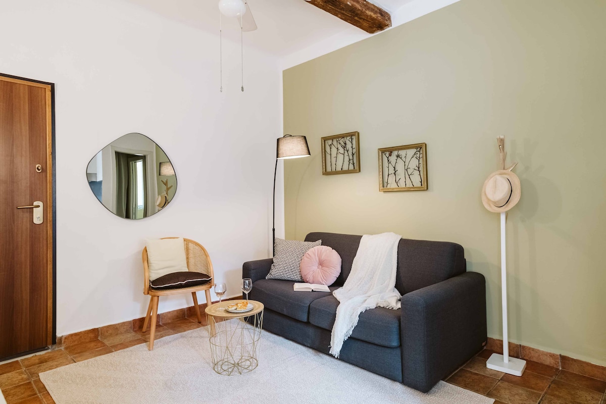 空調 新廚房的照片即將推出! 卡莫利歷史中心的舒適公寓, 距離海灘1分鐘路程 最近翻新的房子包括客廳、小廚房、雙人臥室和帶淋浴的全套衛浴。 非常適合想度過平靜愉快假期的人,將車留在後面,步行前往海灘、港口和商店。 非常安靜和明亮的房子。 只有一段樓梯。 免費光纖 WiFi。