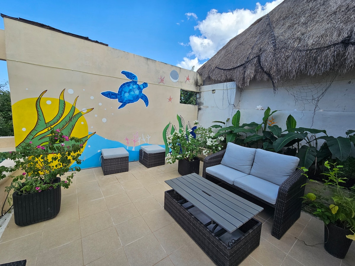 這座高級海灘別墅位於科蘇梅爾島安靜僻靜的海灘上,距離加勒比海僅150英尺。令人驚嘆的景觀等著你。 您將擁有如家一般的舒適:Bose音響系統、Netflix和Wifi...帶上您的工作,住上一段時間! 我們的左側和右側都有海灘俱樂部。 您不必走太遠就能享用美食和飲料。 屋頂上是一個派對palapa ,您也可以完全使用。 與大樓內的其他公寓共用。