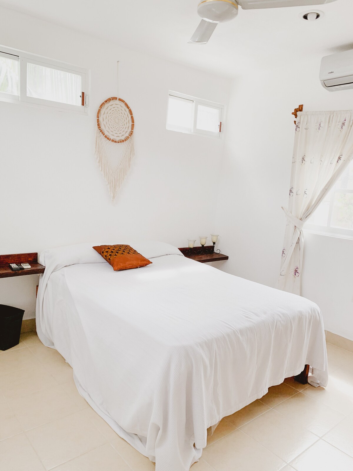舒適的2間臥室後屋,配有1間浴室、廚房和寬敞的露臺。 每間臥室均配備全套家具和空調、爐具、微波爐、可收看Netflix的有線電視和熱水。 位於科蘇梅爾市中心,距離渡輪碼頭僅3個街區。 享受快速的光纖 Wi-Fi,非常適合在度假期間工作。 這間後屋有自己的獨立入口。 您還可以使用清涼的泳池,非常適合在島上度過一天後放鬆身心
