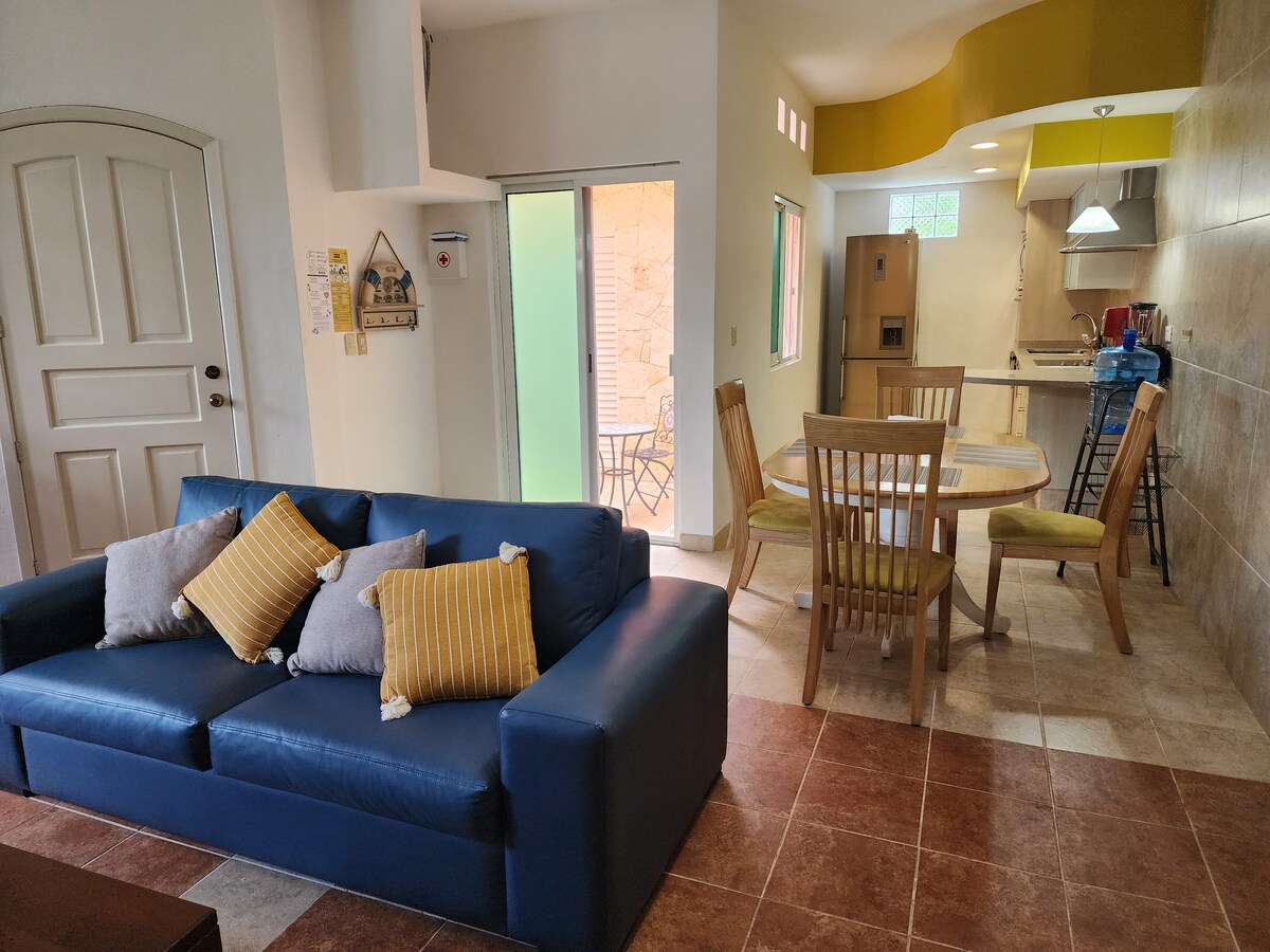 一間臥室公寓,配有客廳、小廚房、配有淋浴間和熱水的浴室、空調、服務、泳池、吊牀、休閒區、包括清潔、棉牀單和毛巾。 位於島上最好的區域,通往加勒比海的一個街區,有停車位,四周環繞著熱帶花園,距離島嶼中心僅4個街區。