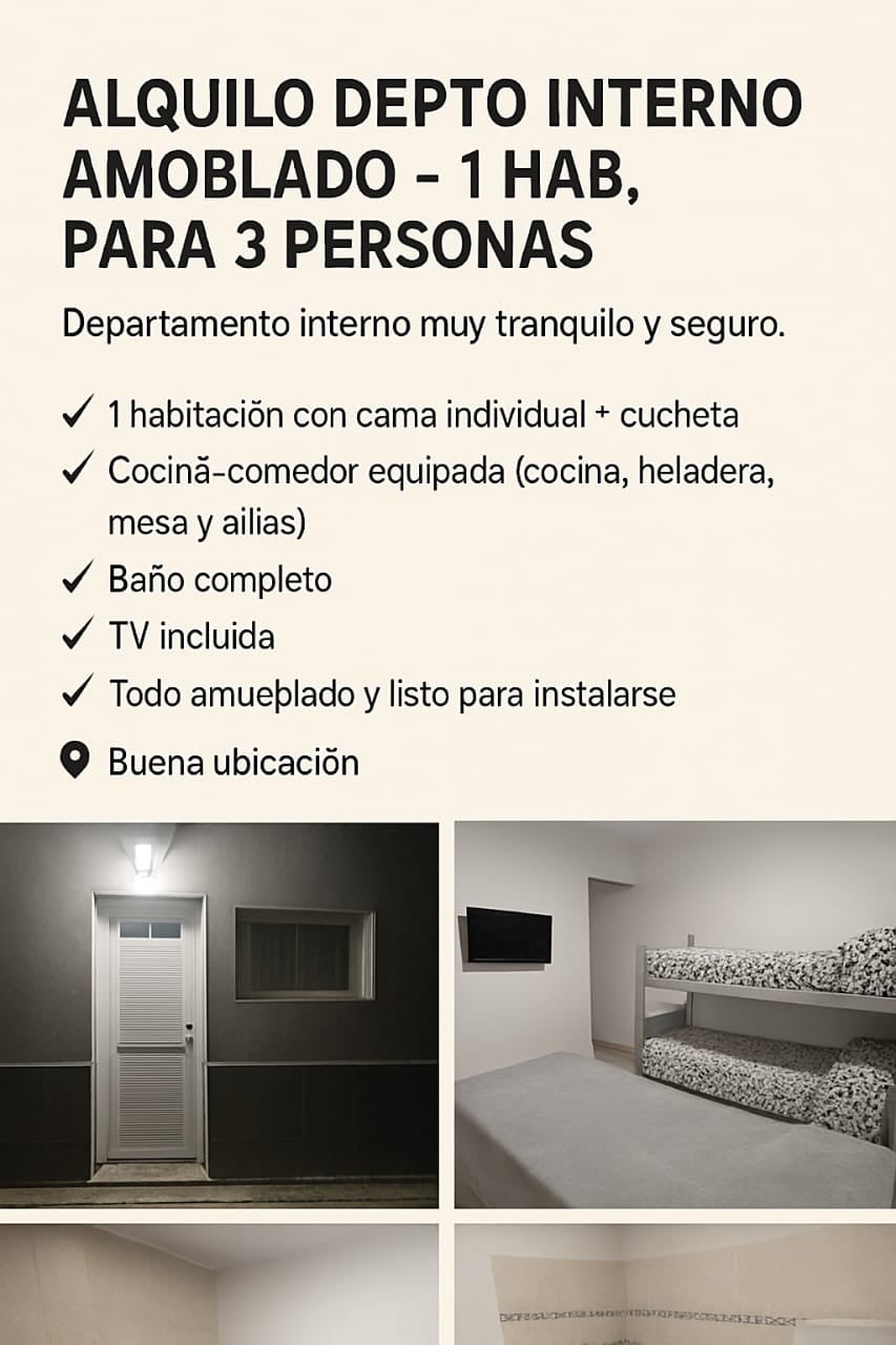 享受這間住宿的舒適,距離microcentro只有幾個街區,非常適合商務差旅、浪漫度假或花幾天時間了解這座城市。 該公寓公寓有: • 帶雙人床🛏️的房間 • 客廳配有🛋️沙發床,可供額外房客使用 • ❄️ 2 台冷暖空調 • 🍳 設備齊全的廚房 • 🚿 獨立浴室和洗手台 • 📺 WiFi y TV • 私人有蓋🚗車庫,可停放汽車,但不適合大型廂型車
