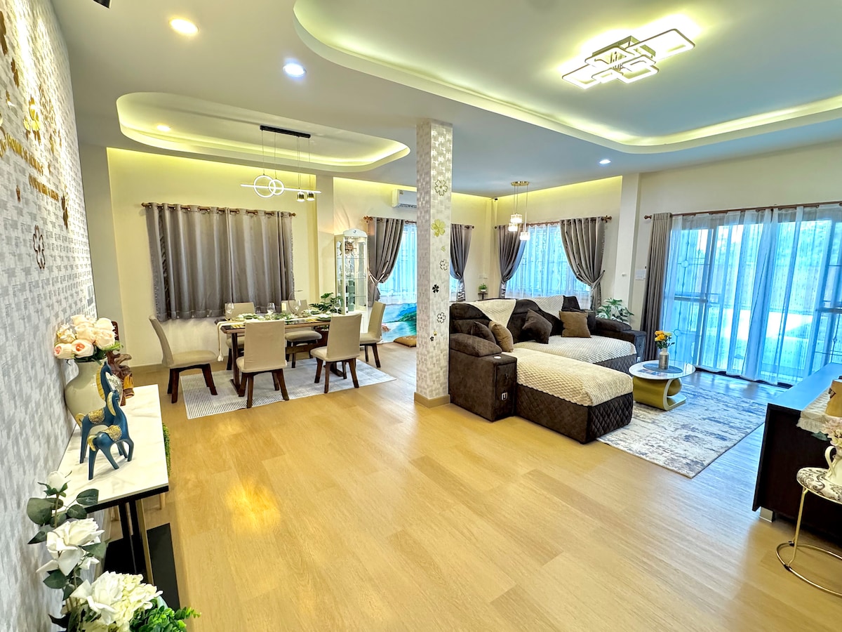Hang Dong 寬敞的家庭度假屋 🏡 逃離到我們位於安全門禁社區的房客最愛的4臥室房源。 非常適合大家庭或團體入住! 摘要 ✅ 4 間大臥室/3 間浴室 ✅ 可使用泳池、健身房和電動車充電器 ⚡ ✅ 全套廚房 + 用餐區 ✅ 5分鐘即可到達Kad Farang/15分鐘即可到達機場 享受隱私、舒適和充足的空間。 立即預訂家庭度假!✈️
