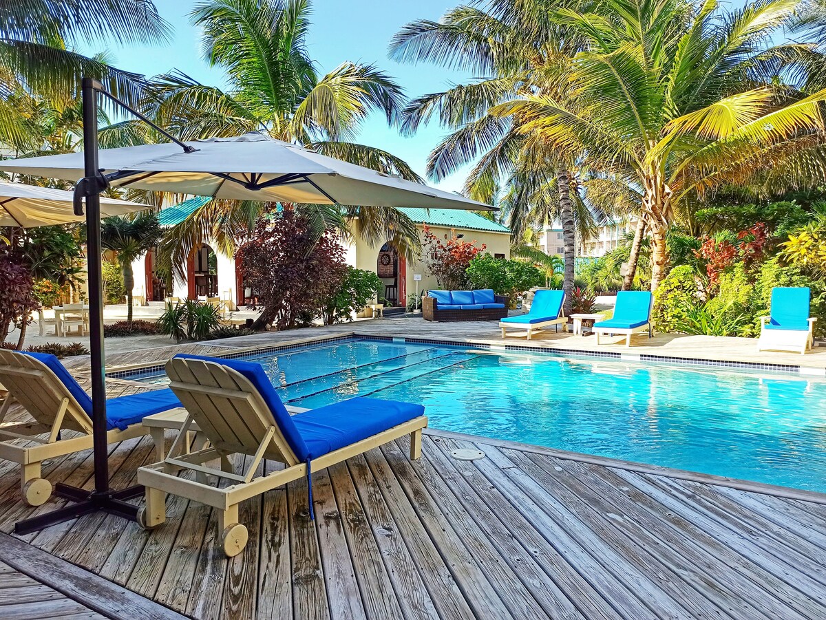 在Palapa House舒適的三樓飯店房間放鬆身心,就在San Pedro鎮外。 靠近餐廳、商店和當地島嶼生活,但平靜而悠閒。 享受海風,使用小型度假村式泳池,可俯瞰泳池的有蓋露臺,欣賞加勒比海的無阻礙景觀-這是您早晨咖啡或享受日落的完美場所! 是您貝里斯度假的理想海濱家居基地