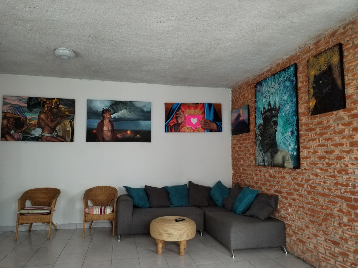 位於聖佩德羅朱魯拉市中心的迷人公寓;一公裏公路可供快速通行和轉乘。 距離普埃布拉Cd.僅幾分鐘路程;是居住和了解Cholula的絕佳方式。 在任何時候,你都會有我們的支持,讓你感到舒適,我們有你需要為您的訪問和我們的幫助,每天24小時的一切。