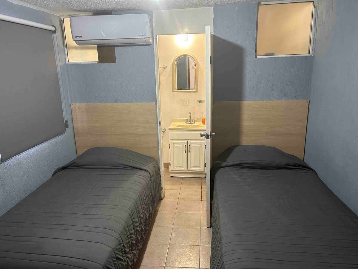 單間公寓在房子側面有獨立入口。 它有 1 張單人床、自己的浴室、智慧螢幕、有線電視、網路。如果您想烹飪簡單的食物,房源內有一個烤架。 入住時間為下午 2 點,退房時間為上午 11 點。 禁止吸煙,禁止攜帶寵物 由於蒙特雷的乾旱,如果提前通知,城市可能會停水。 ** 如果您需要發票,發票金額為總金額加上增值稅