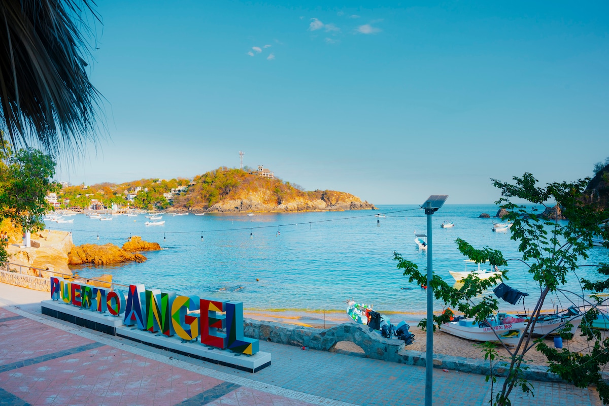 Casa El Delfin是一棟3層樓的房子,距離墨西哥瓦哈卡太平洋海岸最美麗、最寧靜的海灘之一僅幾步之遙。 它位於Estacahuite灣,距離Puerto Angel (一個小漁村)僅5分鐘路程,距離Huatulco機場40分鐘路程。此房源適用於屋頂(3樓)的平房。包括整個屋頂(300公尺)、露天臥室、用餐空間和衛浴。 房子的海景令人難忘。