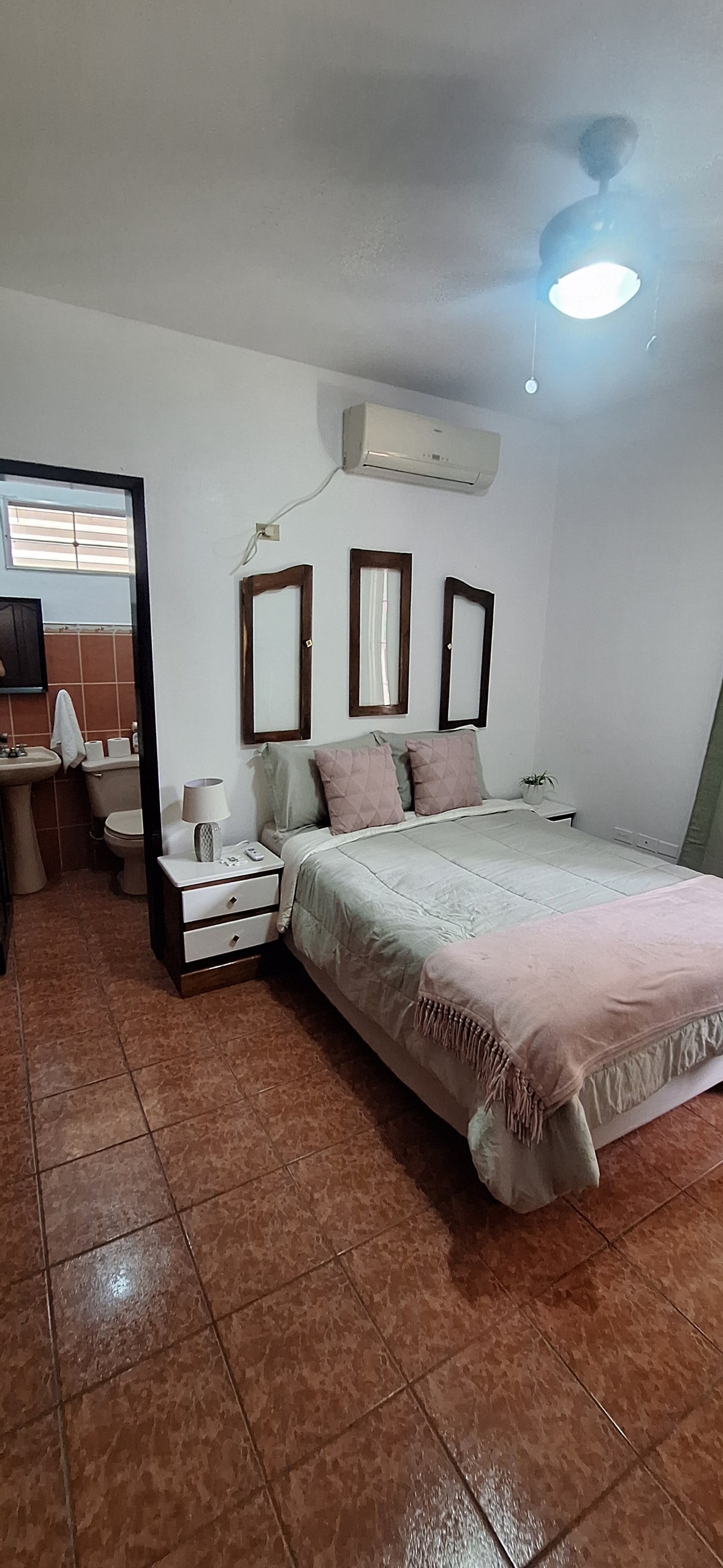 入住這個獨一無二的地方。 我們的房間是獨立的,配有一張全尺寸牀、一間配備熱水的獨立浴室、一臺32英寸有線智能電視、衣架、一張可以工作的書桌、熨鬥、Wi-Fi和空調。 我們位於城市購物中心, “Zona Viva” , Grand Bus Station , Copantl Hotel & Convention Center ,醫院,銀行,市中心等附近。 我們還有一個能源工廠。