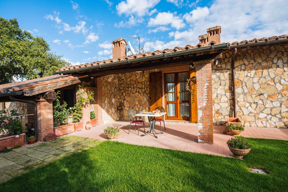 In villetta indipendente accogliente appartamento in stile toscano recentemente e finemente ristrutturato e situato in una terra ricca di storia. A pochi km da città d'arte e sulla via Francigena, l'appartamento può essere base per percorsi naturalistici o enogastronomici. Da una bella terrazza sul panorama potrete godere i vostri pasti, ammirare il tramonto ed osservare la maestosa e magnifica Rocca medioevale .Dal 22/03/18 tassa di di soggiorno comunale:2 € a persona a partire dai 12 anni