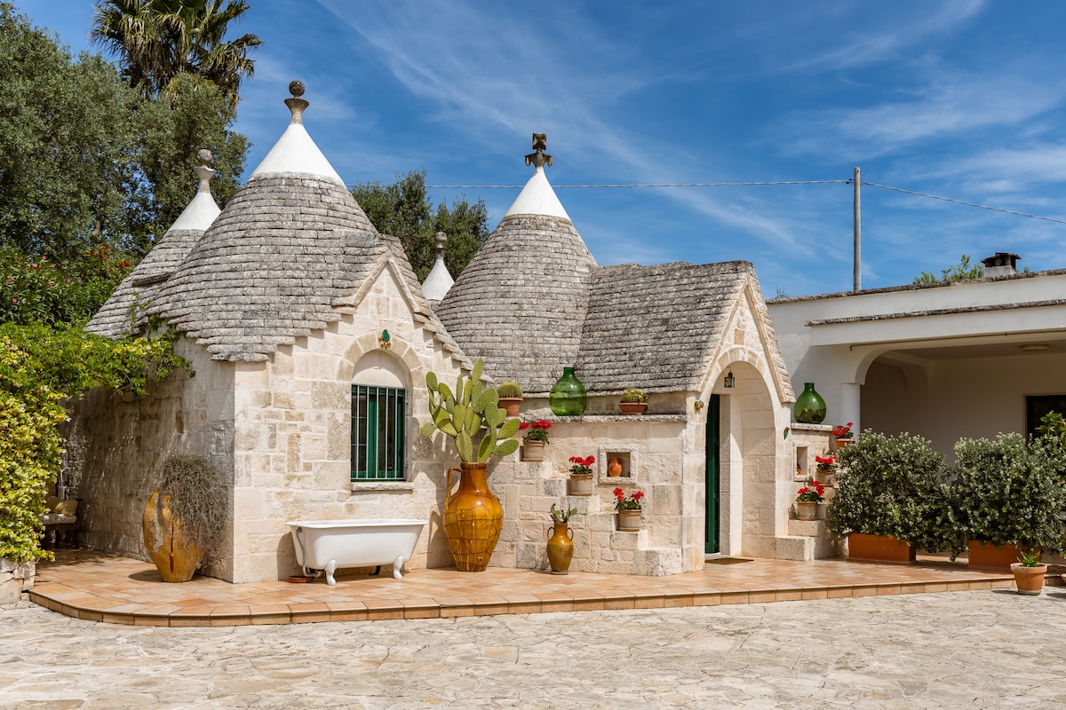 我們的特魯洛位於巴森託( Barsento )的心臟地帶,阿普利亞丘陵地區擁有乾燥的石牆和令人驚嘆的風景,距離阿爾貝羅貝羅( Alberobello )幾公裏。 非常適合大自然愛好者和短途旅行,輕鬆的住宿或簡單浪漫的週末。 由於寬敞的室內和室外空間,最多可供5人舒適入住。 花園設有戶外按摩浴缸,讓您在戶外度過愉快的日子或浪漫和放鬆的時刻。