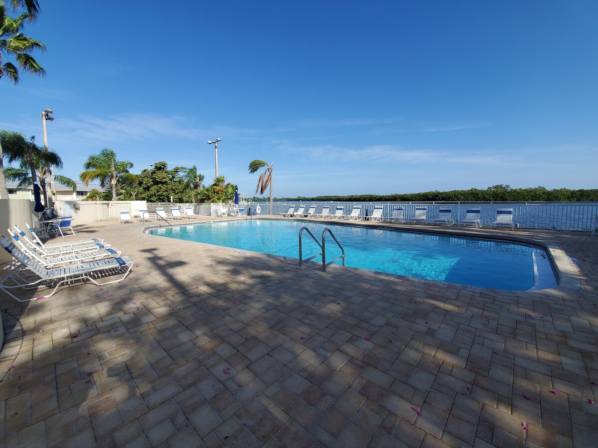 歡迎來到小港灣度假村的旅館。 在這間全新裝修的單間公寓中,可欣賞運河景觀,好好放鬆身心。從露臺或前窗,您可能會看到海豚、海牛或鵜鶘。這間海灘風格的單間公寓可容納四人,步行2分鐘即可抵達私人海灘。度假村有兩個溫水泳池、按摩浴池、餐廳、現場音樂等。 從露臺上,您可以在早晨看到運河上的日出,或在難忘的一天結束時喝一杯葡萄酒放鬆身心。
