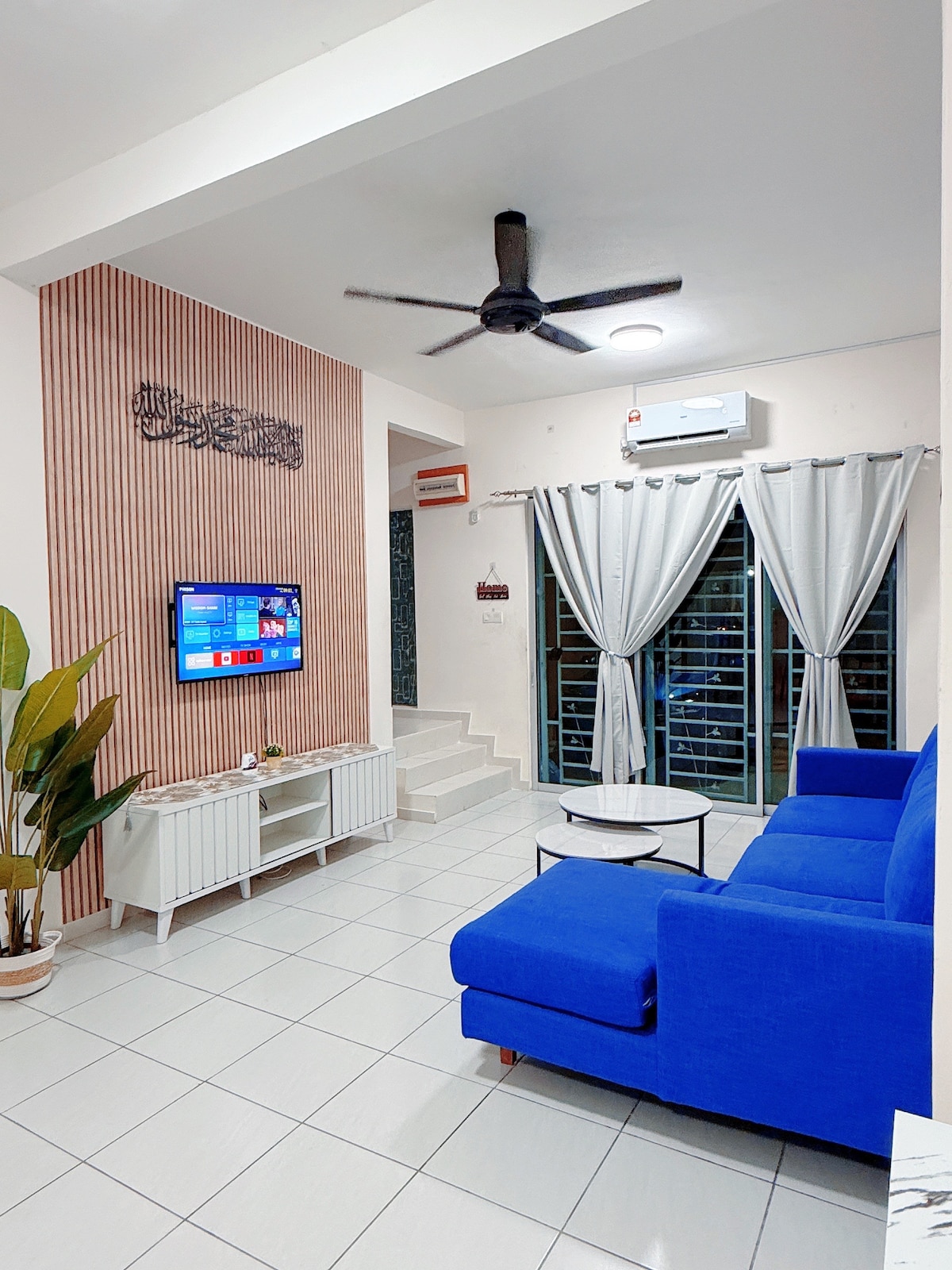 這是寬敞乾淨的雙層房屋,有4間臥室,配有5張標準雙人牀和2張單人牀。 It could accommodate 12peoples comfortably, we have 3 en-suite bath + 1 share bathroom with water heater for guests use. It is most suitable for a big family and traveling group for truly memorable holidays. 这是一个宽敞,干净的双层房子,共有4间卧室,有6张双人床。它可以舒适地容纳12人(还有足够的空间,可以容纳更多的旅客,额外单人床可以根据要求提供,每张RM30),我们有3套房浴+ 1共用浴室配有热水器供客人使用。 它最适合一家大小和旅行团来渡过一个真正难忘的假期。