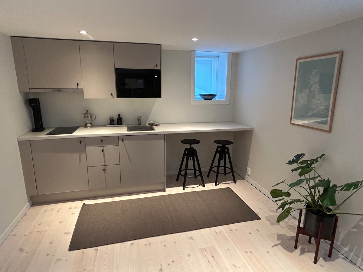 我們在住宅出租一間約40平方米的地下室公寓。 房子位於一個安靜的住宅區,距離市區和港口僅約500公尺。 房子後面的區域是Hjertnesskogen ,可欣賞城鎮和峽灣的美景。 別墅內有獨立停車場,房子前面有大花園。 公寓有一個獨立入口和一個小露臺。