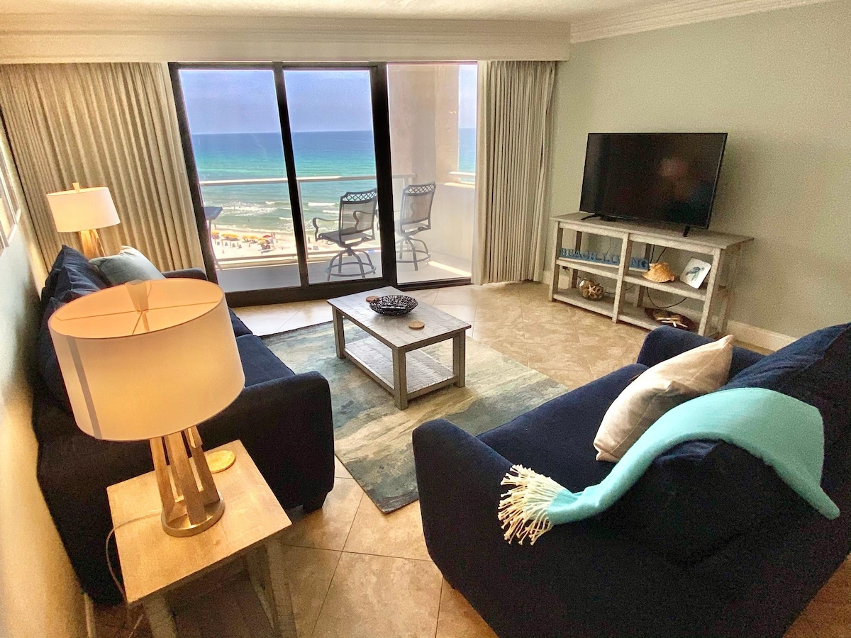 ✔️海濱公寓,配有超大私人陽台和海景 ✔️度假村泳池、按摩浴缸和海邊提基酒吧 ✔️明亮的角落單位,2025年翻新 ✔️超讚房東•自助入住•彈性取消 你的完美海岸度假勝地: 兩間臥室、兩間浴室的度假屋,非常適合家庭、情侶或遠距工作。 開放式廚房和起居區域,方便聚會,毗鄰Sandestin Hilton的無敵海濱位置,以及您不會忘記的日落。