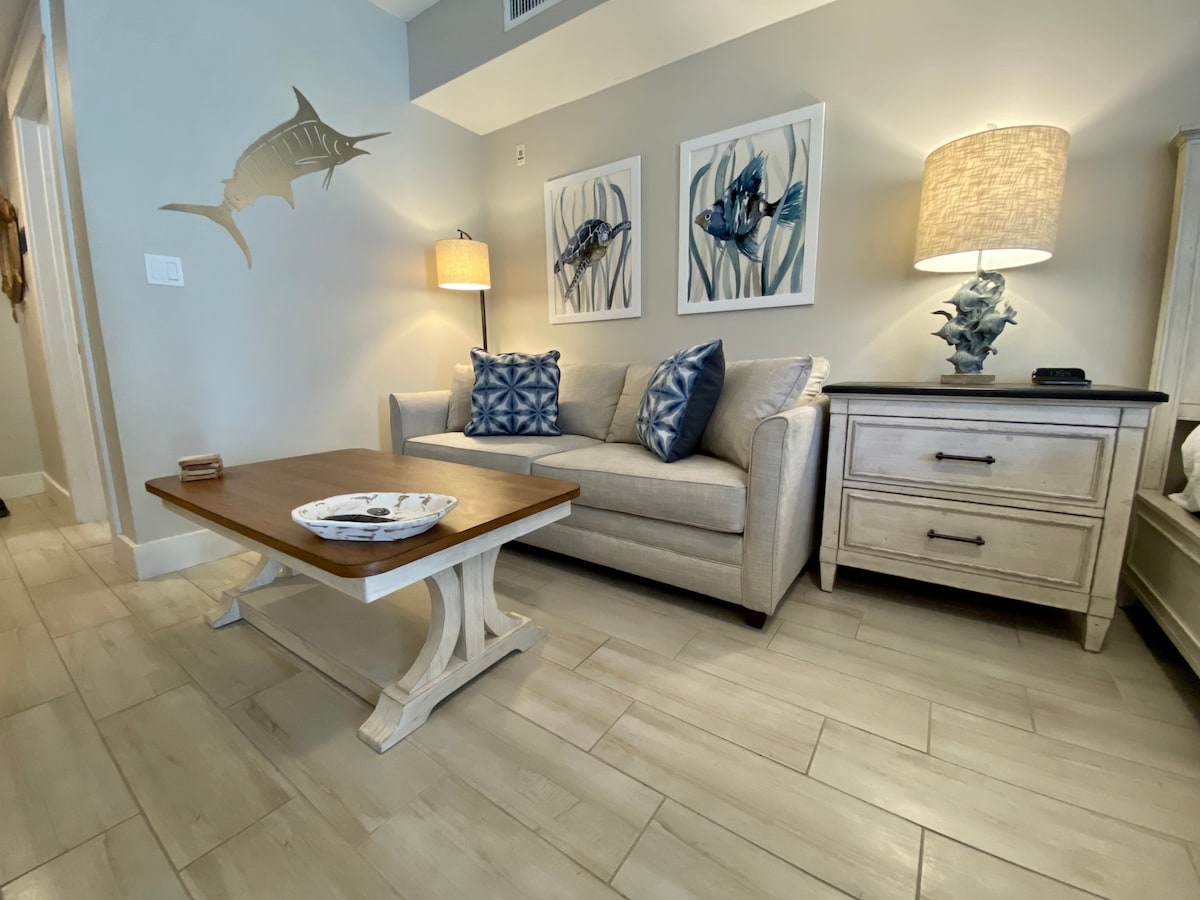 這間Market Street單間公寓位於屢獲殊榮的Sandestin度假村的北側。 它位於灣鎮碼頭村內,步行即可抵達Sandestin會議中心。 非常適合那些希望在海灘附近度過放鬆假期的人,但遠離噪音和繁忙的生活。 大型泳池、按摩浴池、室外壁爐、泳池邊烤架和健身中心就在您的門外,不會令人失望。包括度假村電車通道。