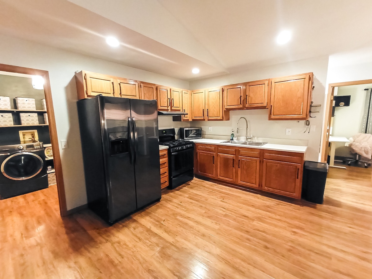 我家這一層都是您的! 非共用單間公寓、無菸房源、後院有圍欄。 請為自己選擇我的房源,而不僅僅是您的狗;享受全套廚房和電器、1張全尺寸日式床墊、有線電視(基本)、洗衣房和浴室。 在有井水的化糞池中享受寧靜的生活。 歡迎來到這個國家! 乾淨的,是的,但住在裡面和被愛。 有限的WiFi ,無法串流。 週租和月租折扣。距離I80約5英裏,距離Starved Rock約21英裏。 看看地圖,我無法更改我的位置。