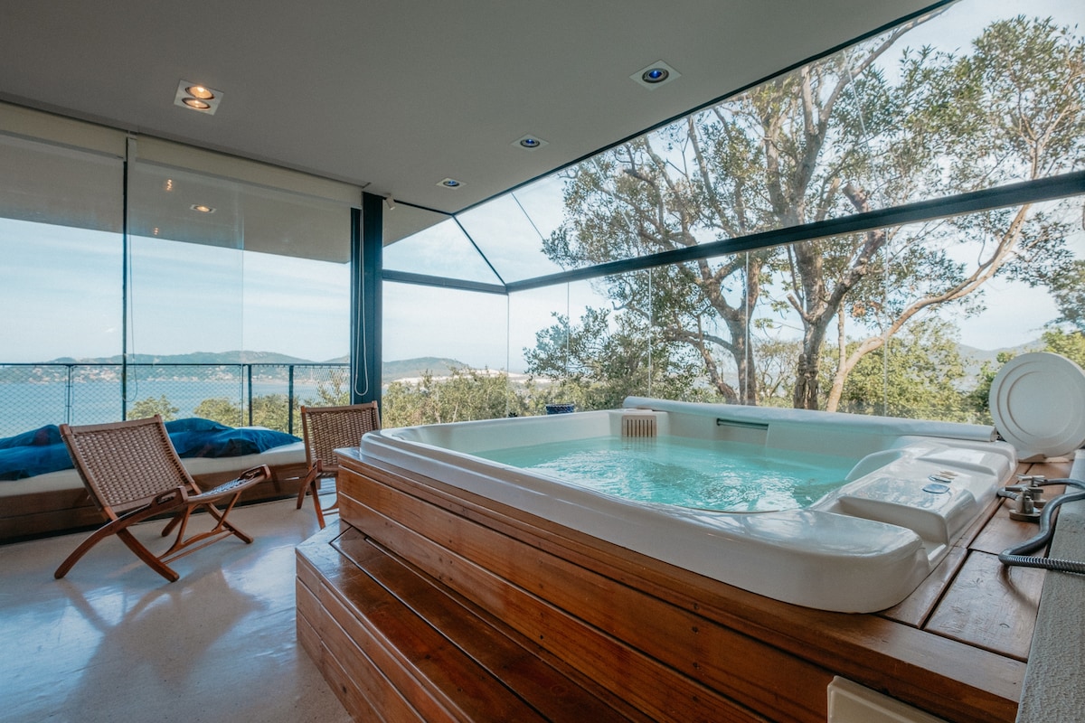 Vista incrível mar 2spas AC forno lenha 6x S Juros