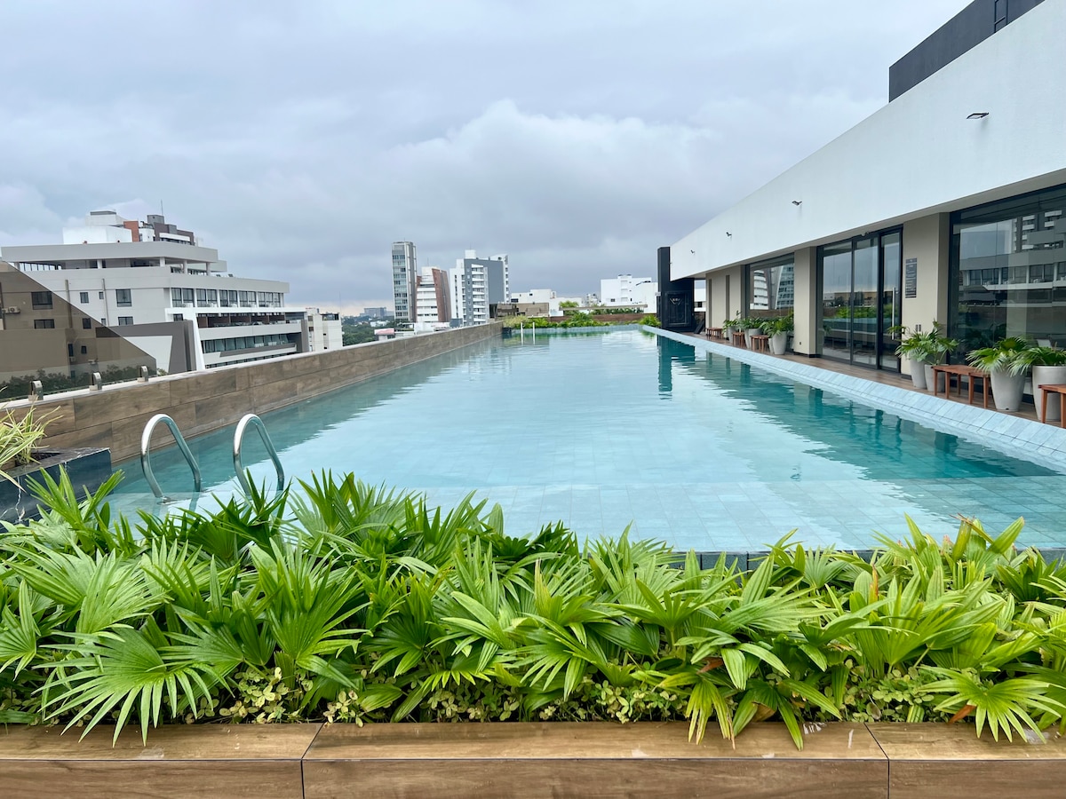 在Equipetrol的Sky Luxia的這間現代化的單間公寓享受優雅的住宿。 設備齊全,非常適合商務差旅或放鬆。 雙人床、功能齊全的廚房、冷氣、WiFi和智慧電視。 可使用大樓的泳池和健身房。 靠近餐廳、商店和企業區。 無鑰匙數位入口。 24小時保安。舒適、設計和極佳的位置。