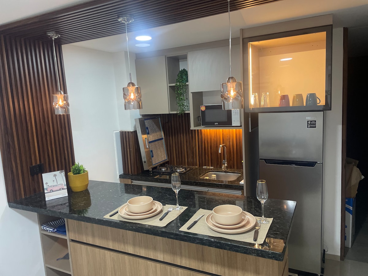 歡迎來到我們美麗的公寓!舒適現代,非常適合尋求舒適便利住宿的人士。 位於北區,靠近拉斯美洲診所 (Clínica Las Américas)。 全新:從家具到電器,公寓內的一切都是全新且品質極佳,為您提供應有的舒適。 一間臥室 設備齊全的廚房 舒適的客廳 一塵不染的浴室 Wi-Fi 和空調 我們期待您的下次光臨!