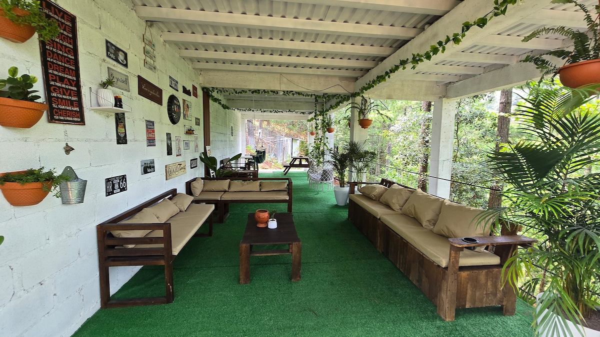 Relajate en este tranquilo y unico lugar, ideal para escaparte del estres de la ciudad a tan solo 12 km de Tegucigalpa . Preparado para estadías largas y cortas; si tu amas la naturaleza y la privacidad este es tu lugar perfecto. El chalet cuenta con una amplia area social donde con tu familia o amigos te sentiras mas relajado en contacto con la naturaleza. Disfruta de una rica comida cocinada en el asador de gas ubicado en el area social y por la noche relajate alrededor de la fogata.