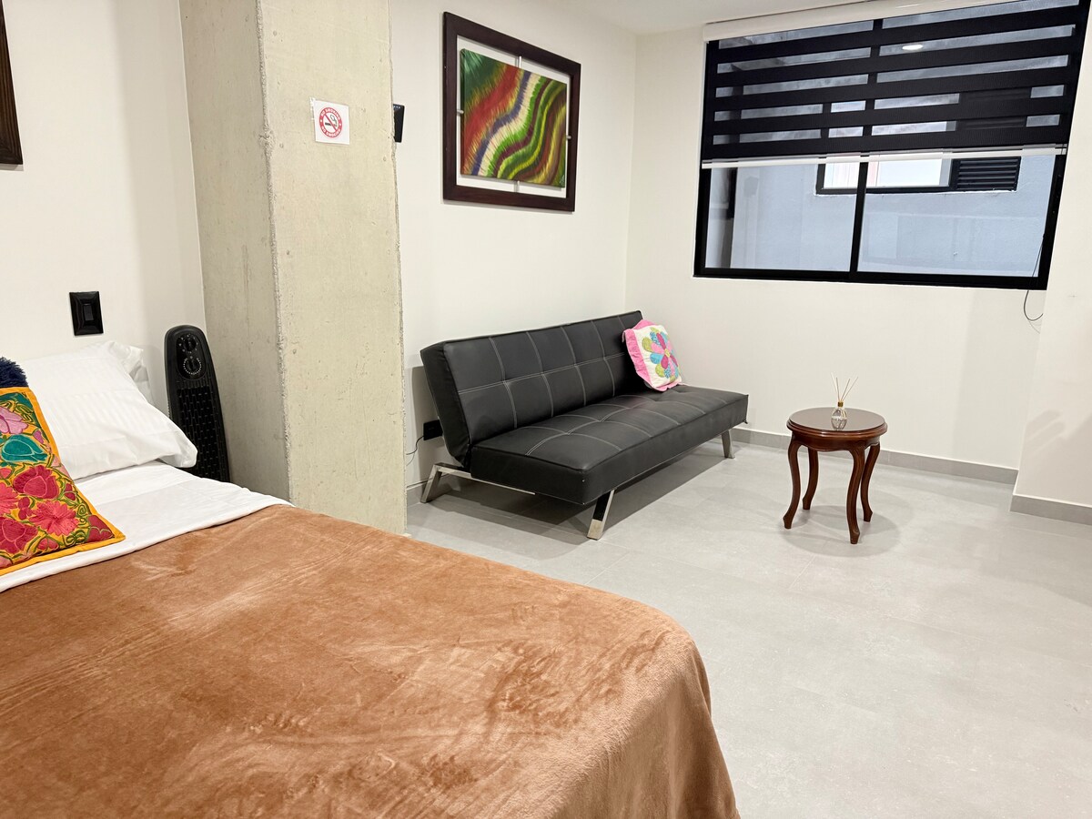 Apartamento moderno en zona residencial tranquila, ideal para parejas que buscan descanso y privacidad. Cuenta con habitación principal con cama queen y baño privado, además de sofá cama doble con acceso a segundo baño completo, cómodo para hasta 4 personas. Parqueadero privado, WiFi estable, y agua caliente. A 10 minutos en carro del centro y puntos turísticos. Disfruta café y aromáticas de cortesía para empezar el día con tranquilidad. Contamos con póliza hotelera.
