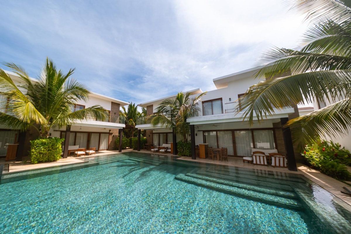 Relájate con toda la familia y amigos en esta villa privada, a 150 metros del mar. Desde su interior puedes escuchar las olas, con 9 camas y 2.5 baños, área social, área de descanso con hamacas, churrasquera, piscina, jacussi, cocina completa interior, área de trabajo y amplias áreas verdes . Pasea por la playa y luego vuelve a la pérgola con hamacas por un descanso . Para esas noches cálidas, no olvides encender el a/c que enfría todas las habitaciones., un lugar elegante y privado.