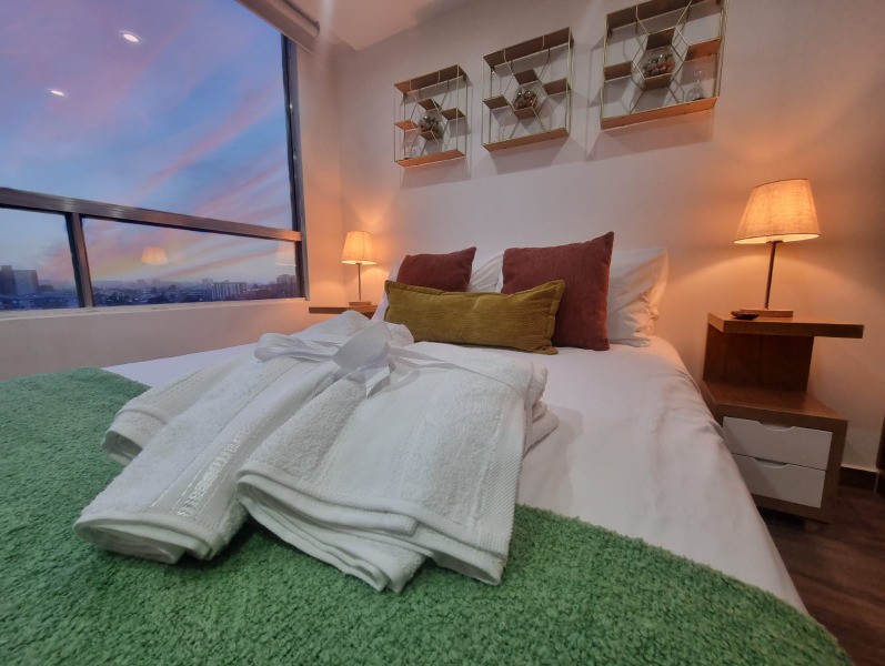 歡迎來到您在波哥大的空間,舒適與景觀相結合,為您帶來難忘的體驗。 這個舒適的單一空間旨在為您提供住宿期間所需的一切。配備冰箱、烤箱和爐子的廚房,非常適合準備您最喜愛的餐點。此外,您還可以使用洗衣機和烘乾機 如果您與更多人一起入住,同一棟大樓內還有另一套相同的公寓