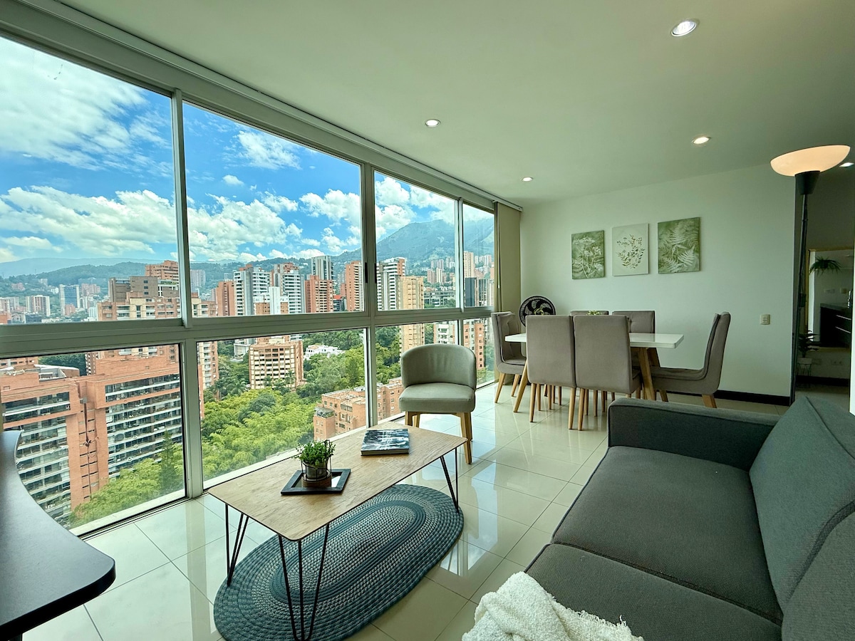 This rental has NO Airbnb service charges, it is borne by the host! -Apartment in the best location in El Poblado, across from Oviedo shopping mall and 100 meters from Medellin's golden mile. -Excellent internet with over 300 megabytes exclusively for you. -12th floor with large windows offering a spectacular view of Medellín. -Building features 24/7 security, two elevators, Turkish bath, sauna, and covered parking. -Bedroom equipped with air conditioning. We look forward to hosting you soon!