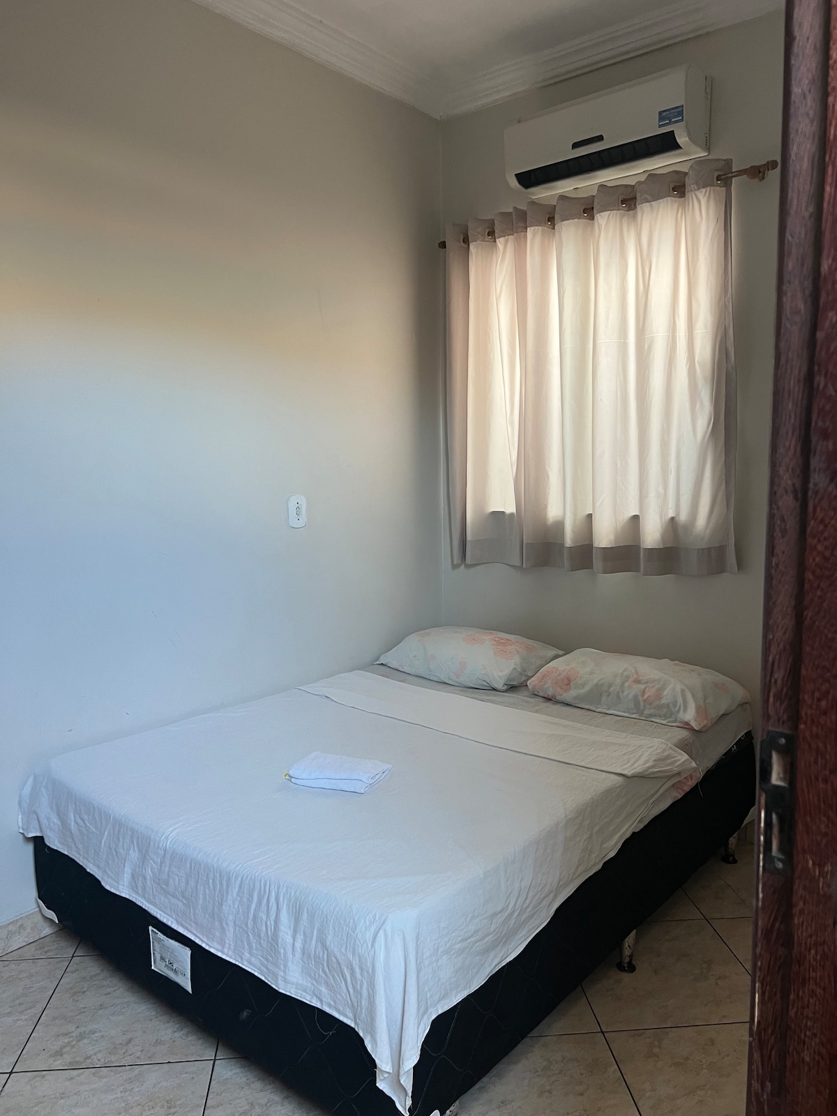 臥室配有雙人床、蚊帳、吊床、書桌、空調和風扇。 可以加一張單人床。 兩扇門:一扇門通往陽臺,一扇門通往餐廳。 兩扇窗戶讓房間非常通風。共用浴室。 我們的房子距離村莊中心步行15分鐘,距離Lago Verde海灘約400公尺。 這個街區樹木茂密,很安靜。