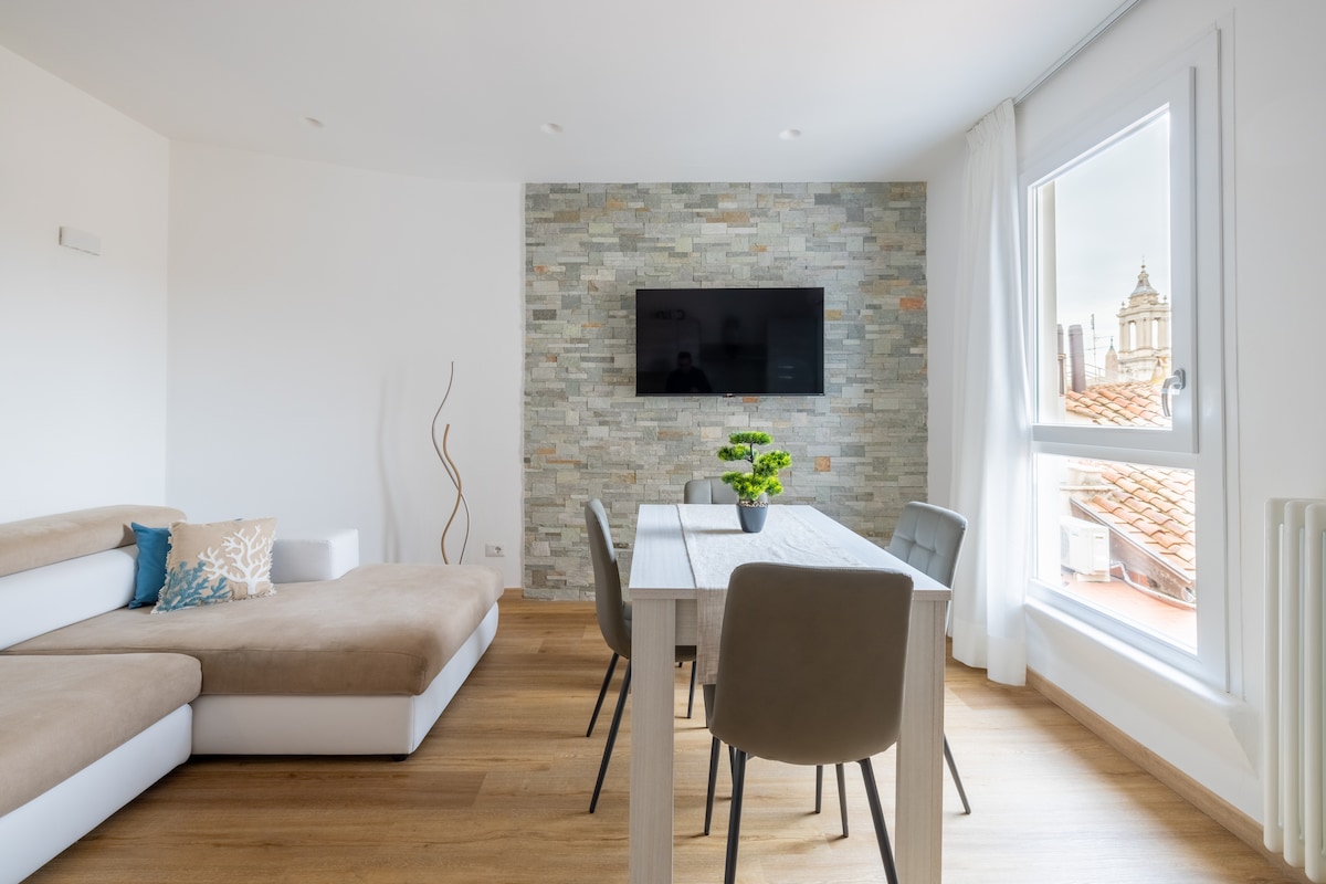 這間一房公寓位於一棟歷史悠久的建築內,面向世界上最具代表性的廣場之一,位於一樓,擁有現代化的設備與服務和令人羨慕的露臺,非常適合戶外用餐。公寓非常適合情侶或小家庭入住,所有房間均配備頂級空調系統、多房間無線音響系統、蒸汽浴和浴缸。 走出前門,拋硬幣,沉浸在市中心的熱鬧氛圍中。