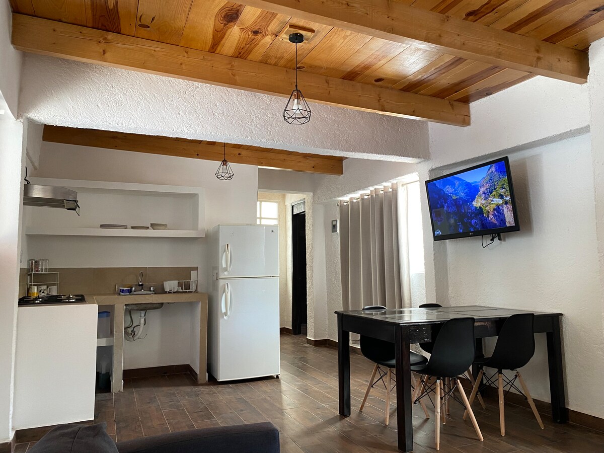舒適的森林套房,可欣賞大自然、火山、城市、天空景觀。山魔法。煙囪。在墨西哥城1100公尺以上的安全環境中放鬆享受。距離Interlomas和Toluca 40分鐘。非常適合情侶、家庭或朋友度假。獲得靈感、徒步旅行、做功課或適應比賽的海拔高度。陽光明媚的山坡。配有監視設備的鄉村獨棟房屋區域,靠近新高速公路。客廳、壁爐、餐廳、小廚房、2 間臥室、2 間浴室、熱水、烤架、螢幕、Wi-Fi。