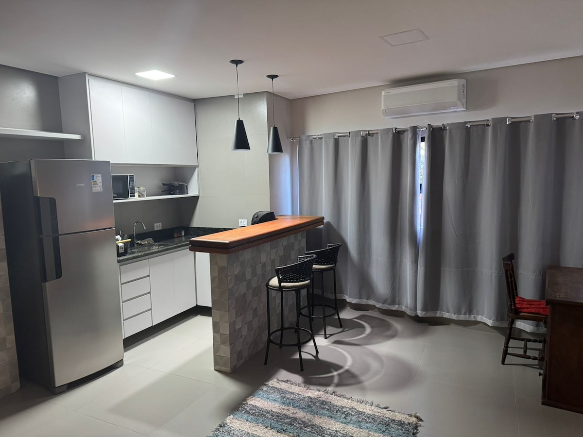 Kitnet compacta e funcional, ideal para estadias práticas e confortáveis. Incluso no espaço: • Roupa de cama e banho Cozinha equipada: • Louças e panelas • Filtro de água Localização excelente: • Próxima a farmácia, padaria, açougue, mercado • Pizzaria e lanchonetes nas redondezas