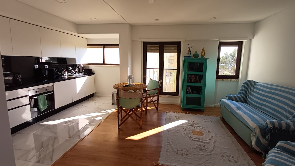 Apartamento reconstruído por arquitecto, excelente privacidade, exposição solar, com wifi, e praia a 150m. 1 suite com SPA e banho turco com aromaterapia. 1 suíte com terraço com vista mar, tela de projeção de cinema. Sala com vista de mar, rio, e terraço, onde poderá disfrutar de uma zona de estar e de um barbecue com grelha em ferro forjado. Perto de restaurantes, cafés e supermercado, e estação de comboio. Ar condicionado e piso aquecido em todas as áreas, TV 4K e box independente por suíte.