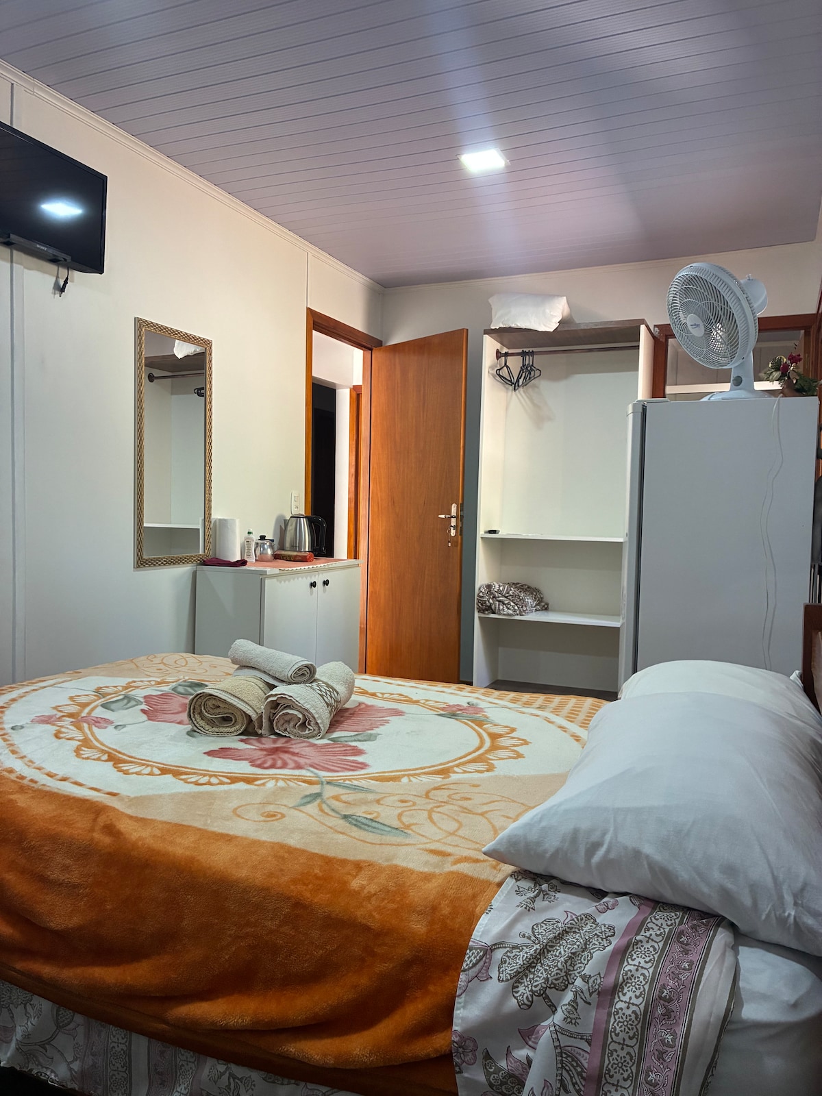 Espaço Santa Rosa距離石頭大教堂( Stone Cathedral )僅1.9公裏,距離卡內拉中心( Centro de Canela )僅5分鐘車程。 小巧的 24 平方公尺單間公寓——配有配備暖氣和冷氣的臥室、廚房和浴室,位於靠近市中心的街區,地理位置極佳! 歡迎您的小型寵物,只要有最新疫苗接種! 我們有一張雙人牀和一張沙發牀,可供兒童或第三位房客舒適入住。