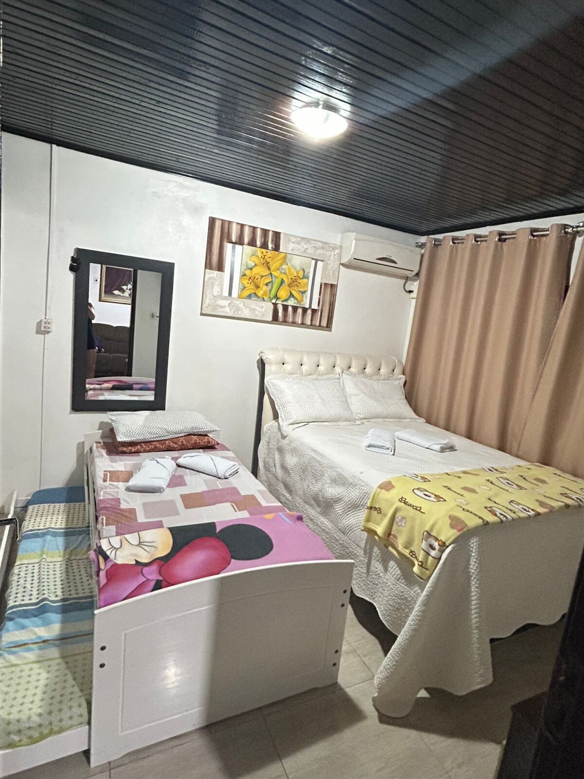在這個安靜的住宿中與全家人一起放鬆身心。 最多可容納09人的房子,有兩間臥室和一間配有牀的改裝客廳、配有爐子、微波爐、電烤箱、冰箱/冰櫃和餐具的完整廚房、01間浴室、01間智慧LED電視、每個房間和客廳都有空調。 臥室特色-一間臥室配有01張夫妻牀,一間臥室配有01張夫妻牀和01張獨立牀,客廳配有01張夫妻牀(沙發牀)和02張單人牀。