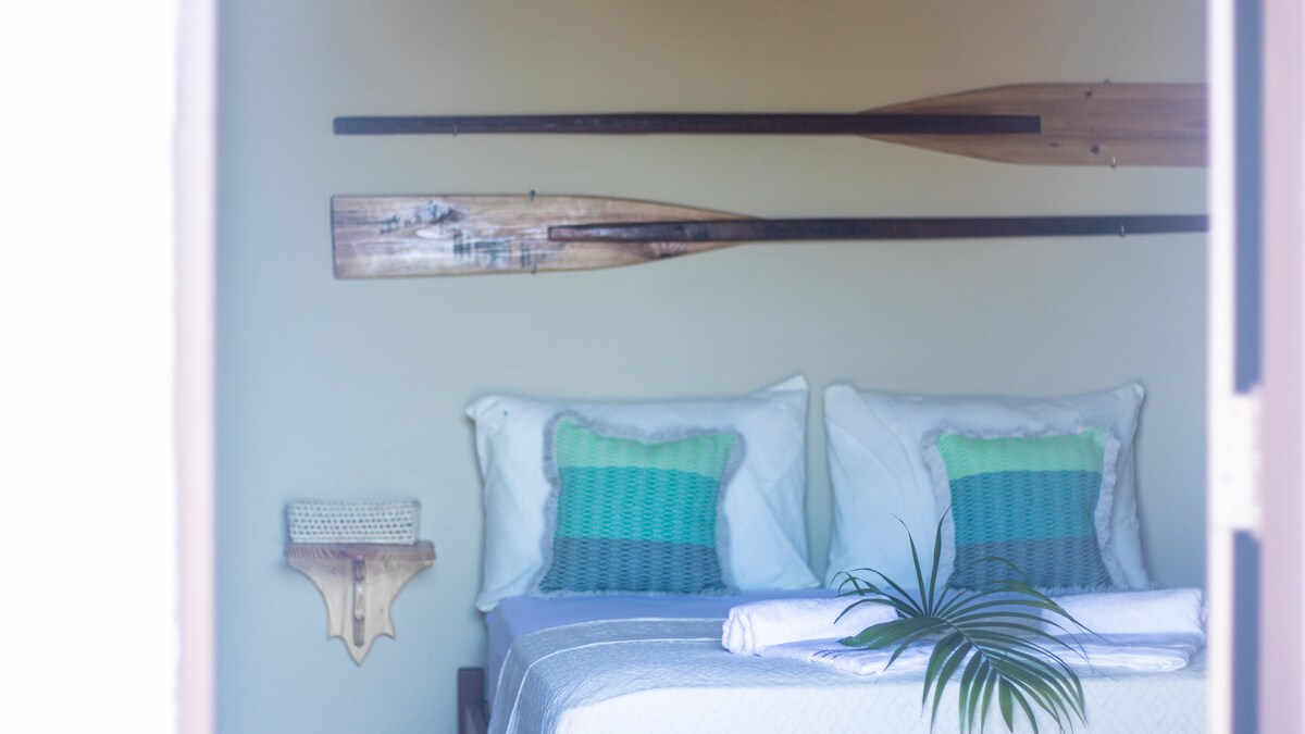 可容納 1/2 人的套房,配有雙人床、冷氣、風扇、獨立衛浴和熱水淋浴間。 臥室位於一樓,有一個陽臺,陽臺上有吊床,可以欣賞旅館花園的美景。 非常適合情侶或想在海灘附近享受寧靜假期的旅客。
