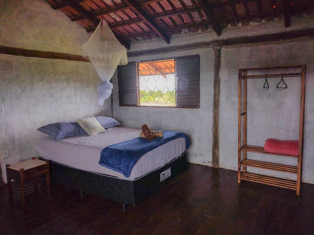 Aqui, o tempo desacelera. Nossa casa é um refúgio acolhedor, perfeito para se conectar com a natureza, descansar e viver momentos mágicos — em casal, com amigos ou em família. A vista para o nosso "quase Jardim de Maytrea” emociona com um pôr do sol de tirar o fôlego. À noite, céu estrelado. De dia, tucanos, araras, beija-flores e seriemas encantam. Trilha exclusiva leva a banho de rio e piscinas naturais na reserva da Fazenda Flor da Mata.
