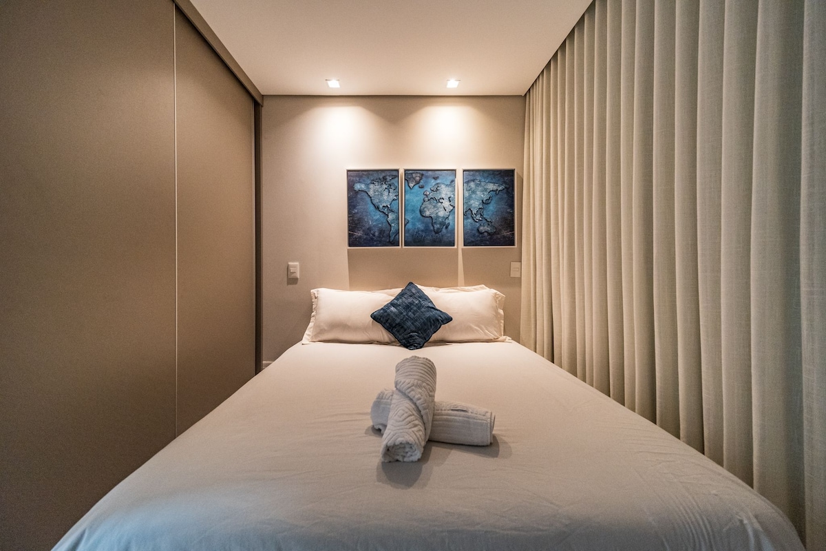 公寓位於城市的特權地區, 完全為現代生活而設計,2 間臥室,包括一個適應並融入客廳環境的家庭辦公室。 配備豪華床單和毛巾、電視、網路、廚房用具、微波爐、冰箱、攪拌機、飲水機、空氣炸鍋、咖啡機、烤架、全套鍋具、最新洗衣機。 空調環境! 公寓:家庭辦公室、健身房、游泳池、遊樂場。