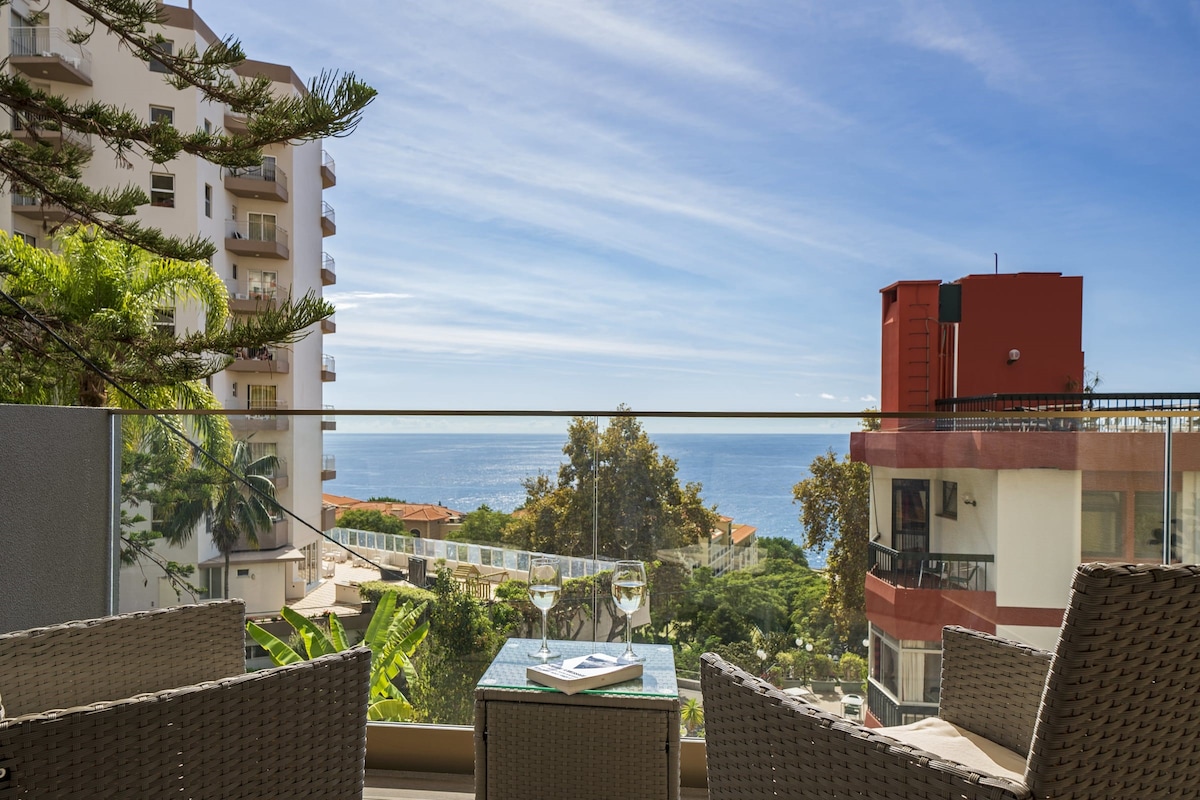 The Place Funchal View是一間現代化的公寓,可欣賞城市和海景。<br>公寓位於住宅大樓的三樓,地下室有私人停車位,配有電動車充電站、花園區和帶日光浴室的游泳池。