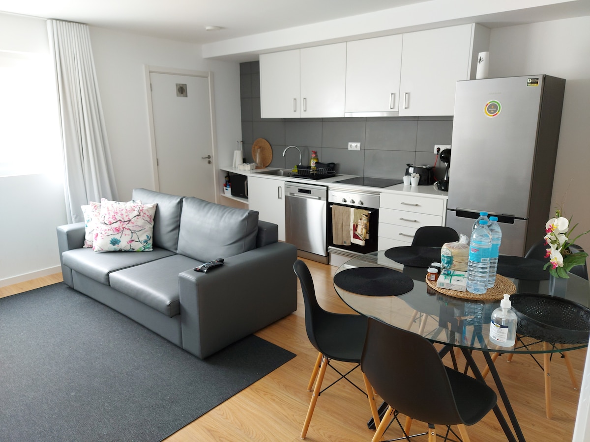 我們位於聖米格爾島,距離蓬塔德爾加達( Ponta Delgada )主要城鎮僅5分鐘車程,坐落在一個平靜、僻靜和隱蔽的地方。 這間單間公寓有獨立的入口和小陽臺、開放式臥室/休息室(配有加大雙人牀和沙發)、套房浴室(配有淋浴間)和廚房(配有餐桌)。