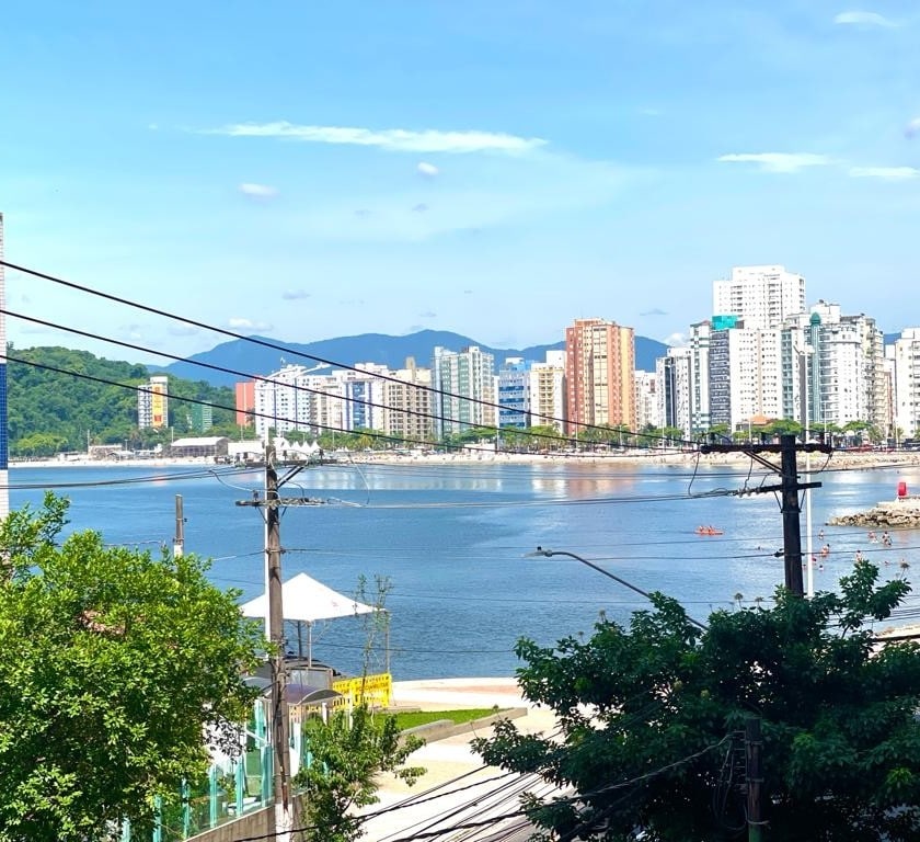 位於沿海最著名的島嶼Porchat島頂的單間公寓! 公寓有24小時保安,安全且便利。公寓可俯瞰Santos和São Vicente海灣的美景。日出景觀非常美妙!舒適的公寓,翻新、裝飾、配備家電、廚房用具和櫥櫃。有一張雙人床和一張沙發床,可容納一名成人。 靠近海灘、酒吧和餐廳。有室內車庫。