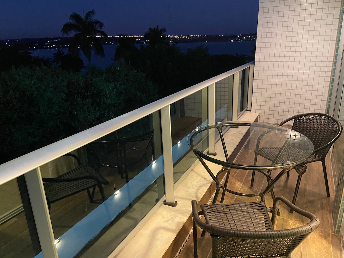湖景度假村(Lake View Resort)是一個罕見的美麗、安靜和高雅的地方!位於巴西利亞最高尚的地區,帕拉諾亞湖(Lago Paranoá)湖畔。 公寓位於巴西利亞最好的位置Asa Sul ,靠近市中心,那裡有三權廣場、部會廣場、普拉納爾圖宮、國民議會、高等法院和大使館區(距離美國大使館7分鐘車程)。