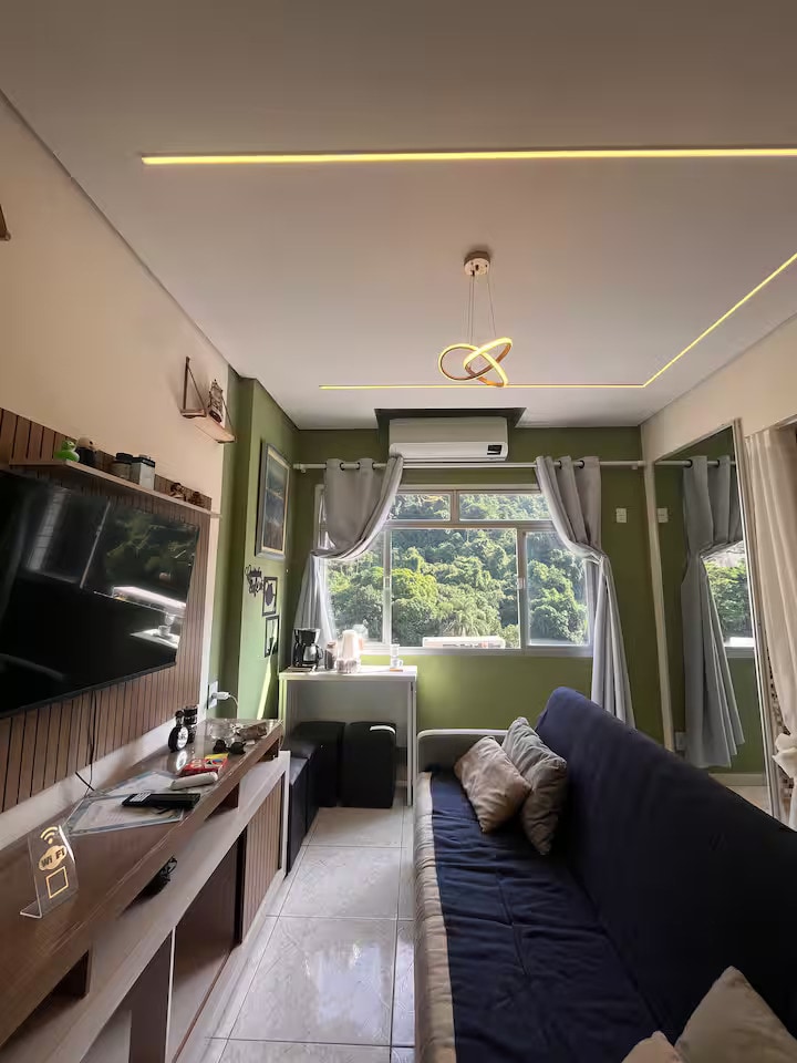 在這個獨特的地方度過難忘的時光,非常適合有或沒有孩子的夫婦。聖保羅海岸的最佳景觀。 34 平方米的單間公寓,位於波爾沙特島 (Ilha Porchat) 的頂部,可俯瞰大海。 全套廚房,無需外出消費。 - Wi-Fi。 - 自助入住。 - 24000 Btus 分體式空調。 - 床單和毛巾 -毯子。 - 物業內有車庫。 - 1 張床。 - 220V 插座 -吹風機。 - 4 口爐 - 空氣炸鍋 - 微波爐。 - 公寓內有小市場。